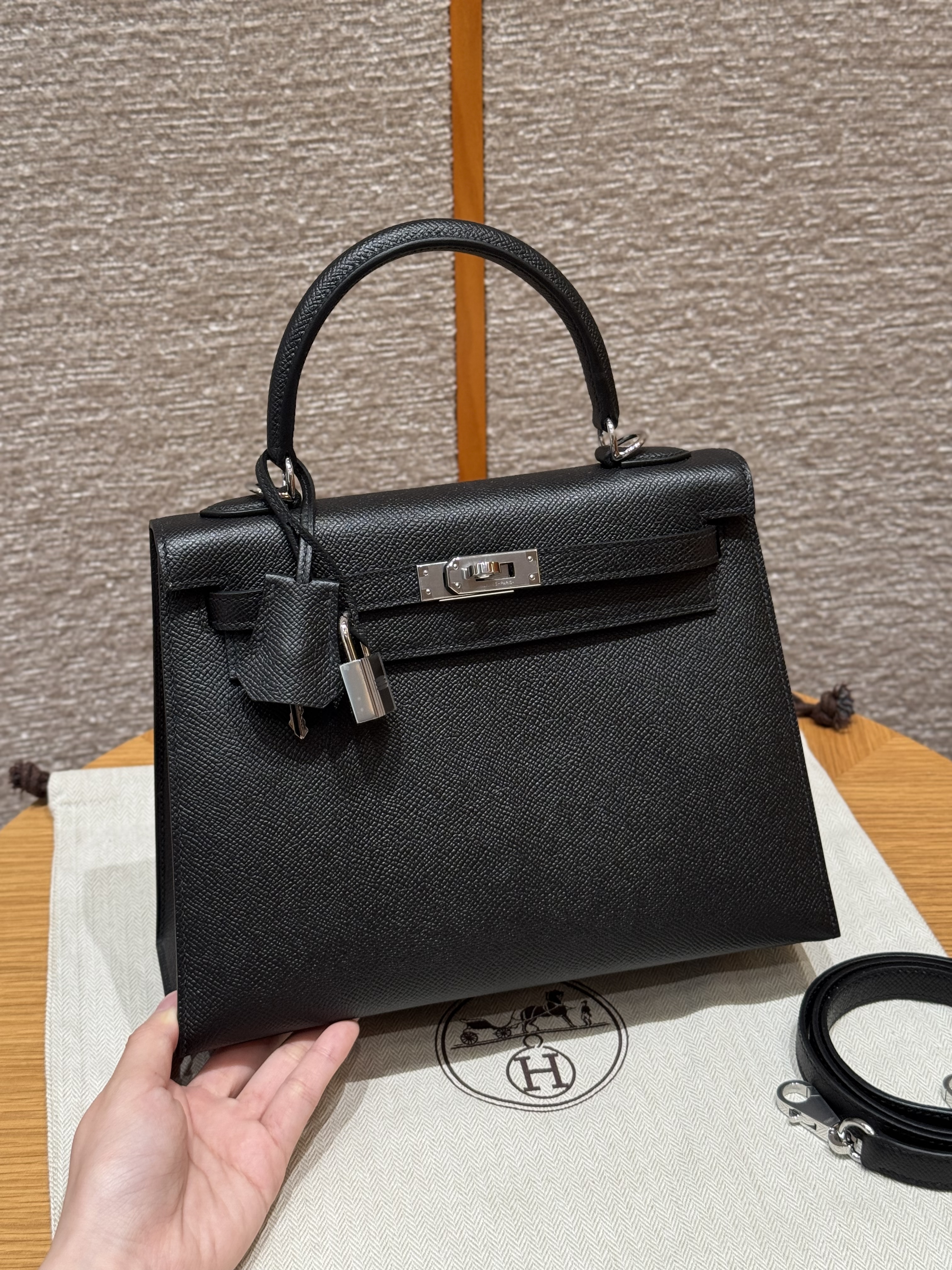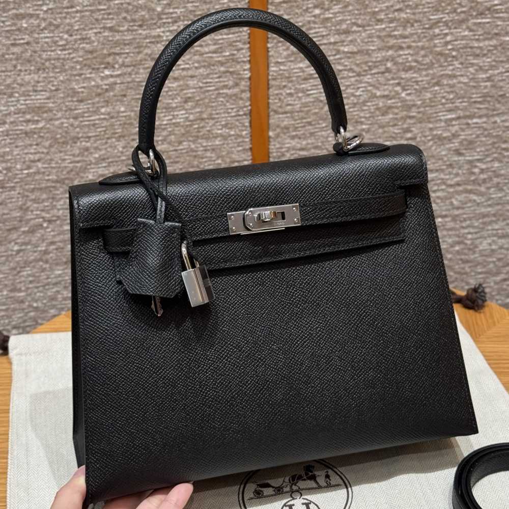최고퀄 에르메스 올수공 켈리 25 블랙 앱송 가죽 은장