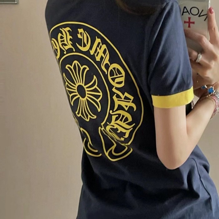 최고퀄 크롬하츠 25SS 여성 백 프린팅 반팔 티셔츠 네이비