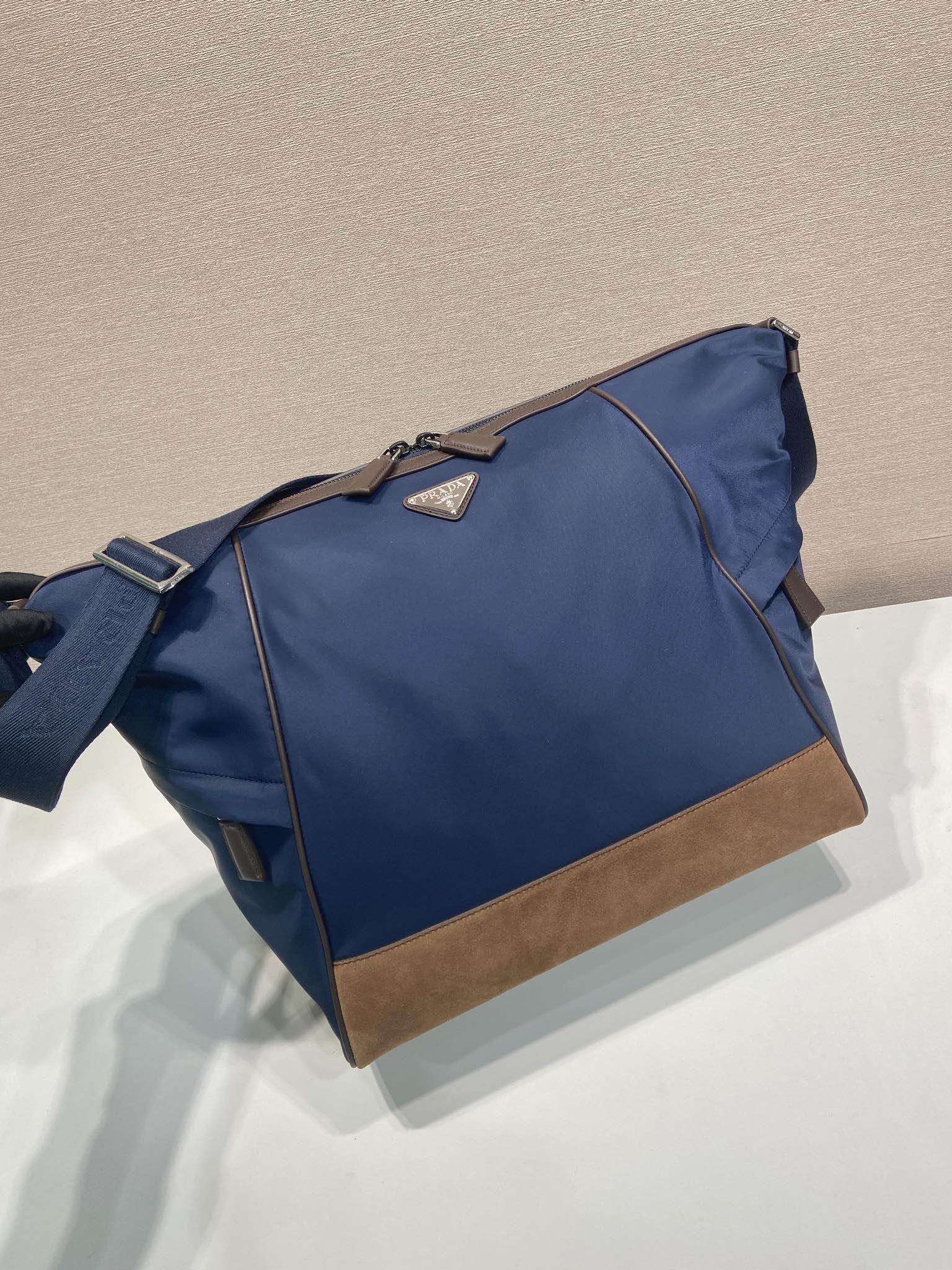최고퀄 프라다 리나일론 및 가죽 숄더백 네이비 2VH180