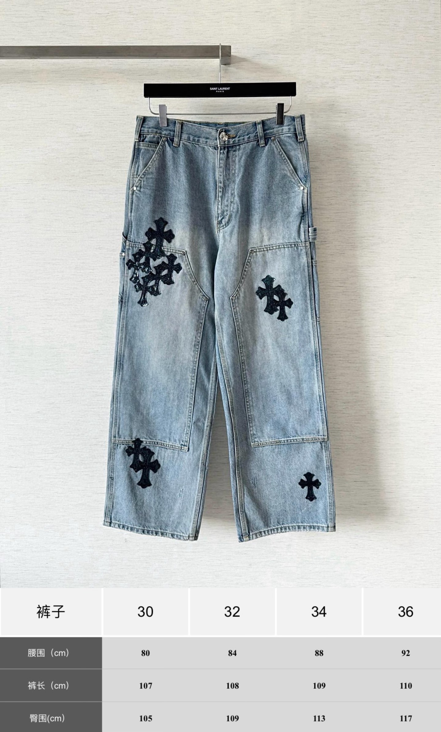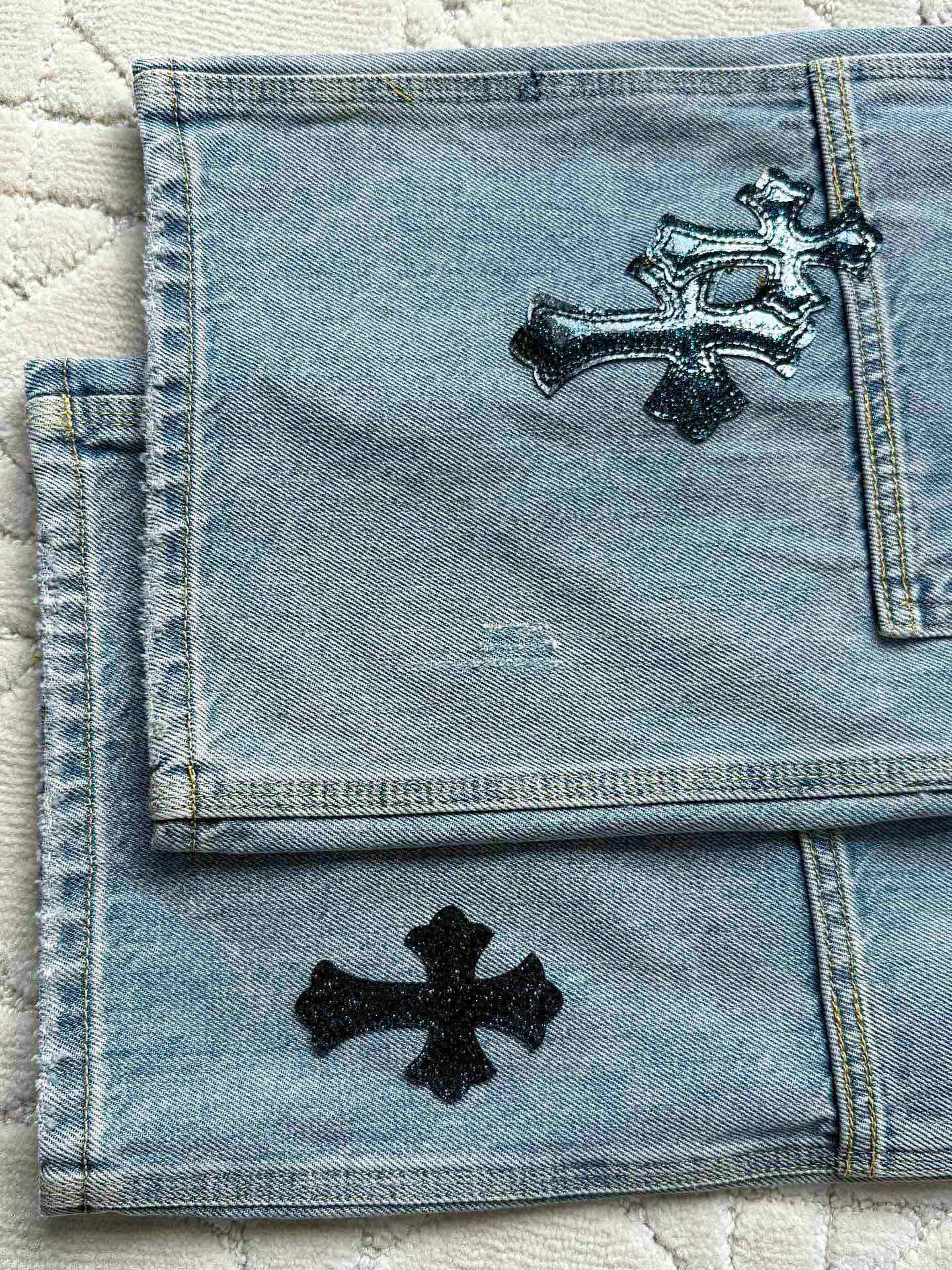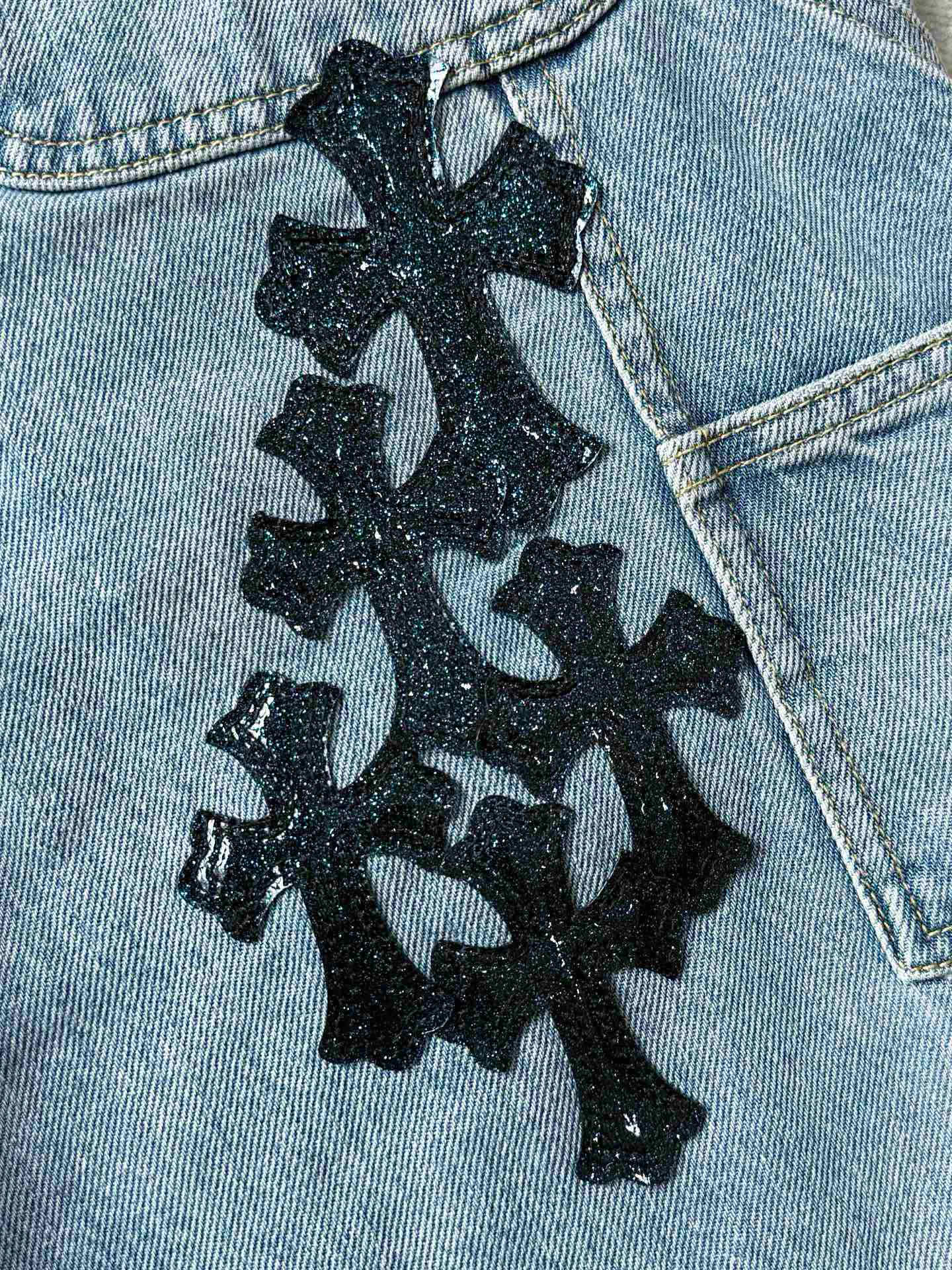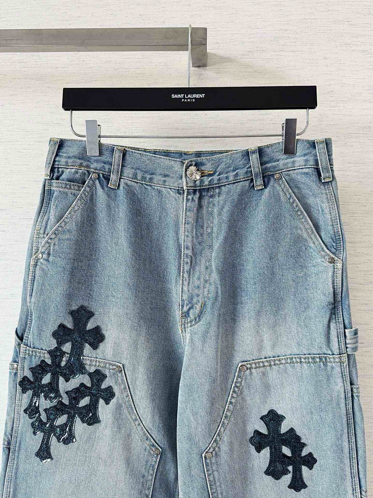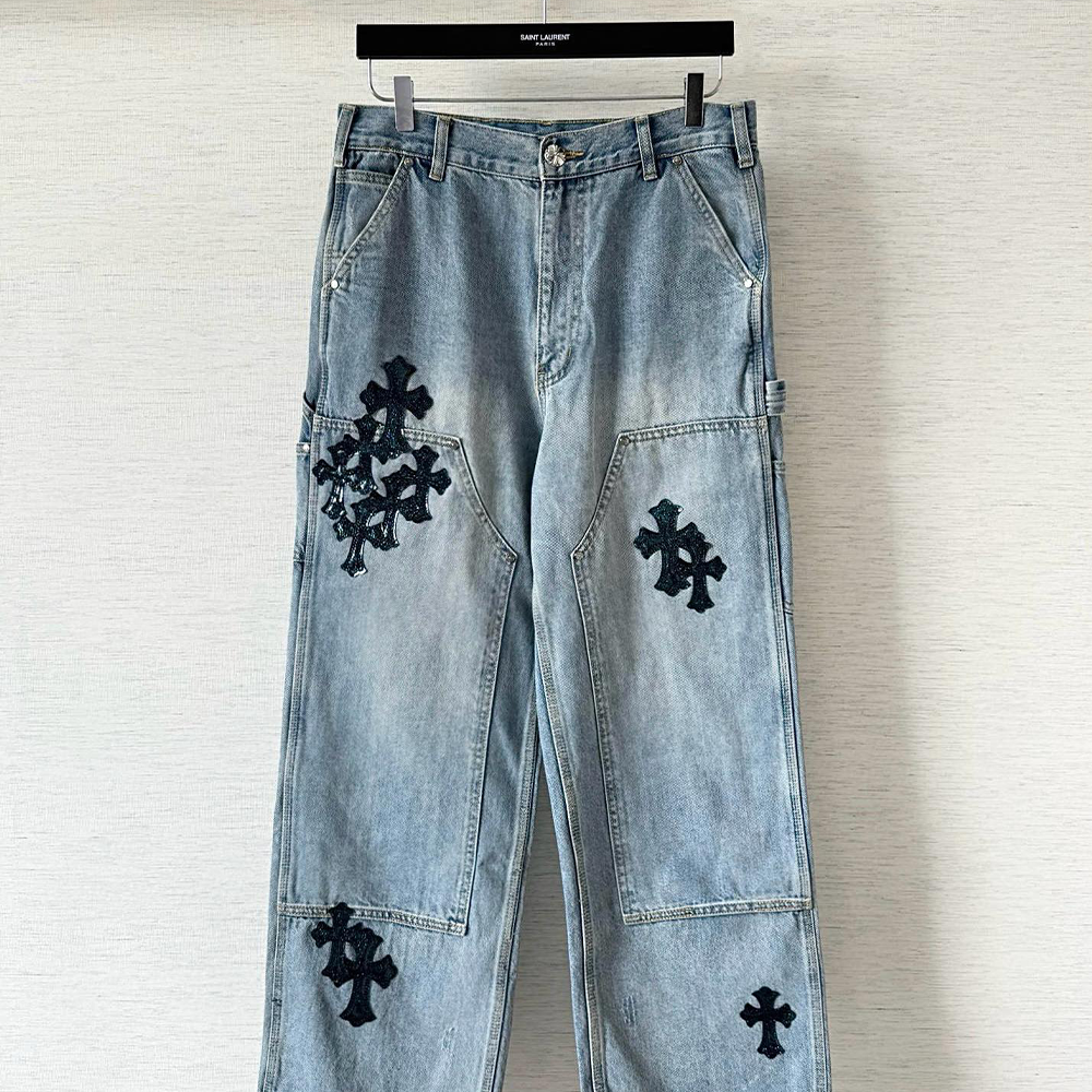 크롬하츠 더블 크로스 연청 데님 팬츠