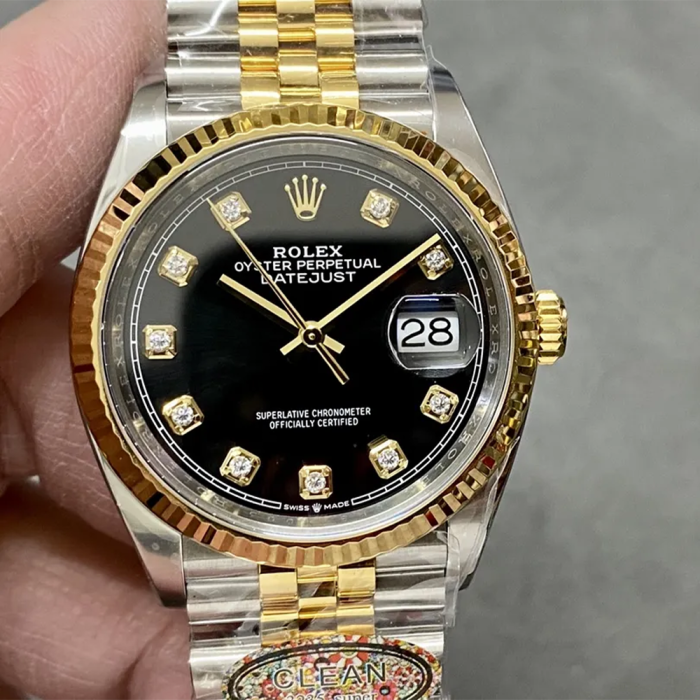 클린공장 롤렉스 데이저스트 블랙 10P 다이얼 옐로우 골드 콤비 36mm 126233