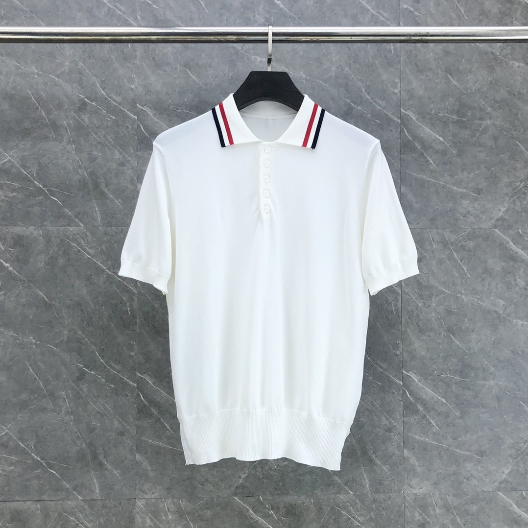 톰브라운 RWB 스트라이프 폴로 셔츠 화이트