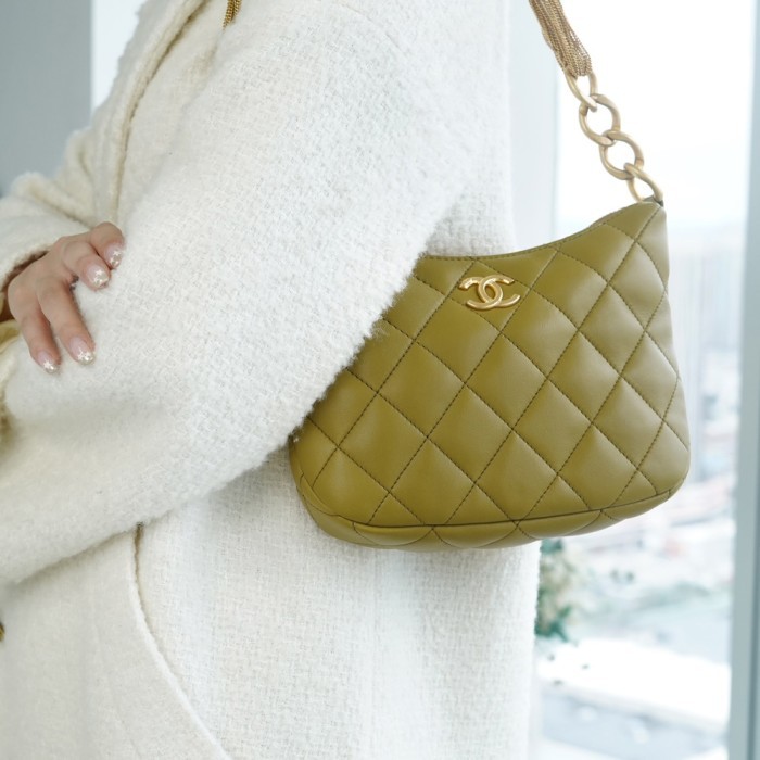 팬더샵 샤넬 램스킨 퀼팅 CC 체인 호보백 머스타드 그린