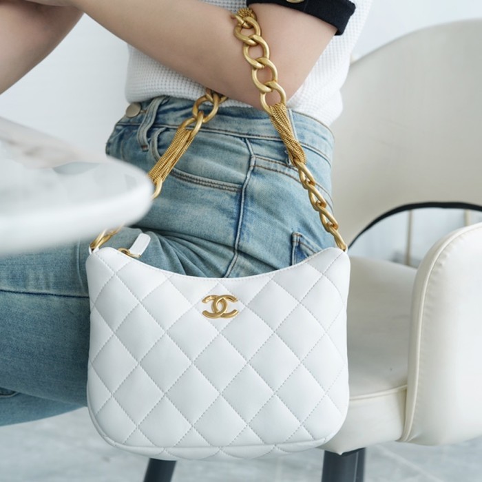 팬더샵 샤넬 램스킨 퀼팅 CC 체인 호보백 화이트
