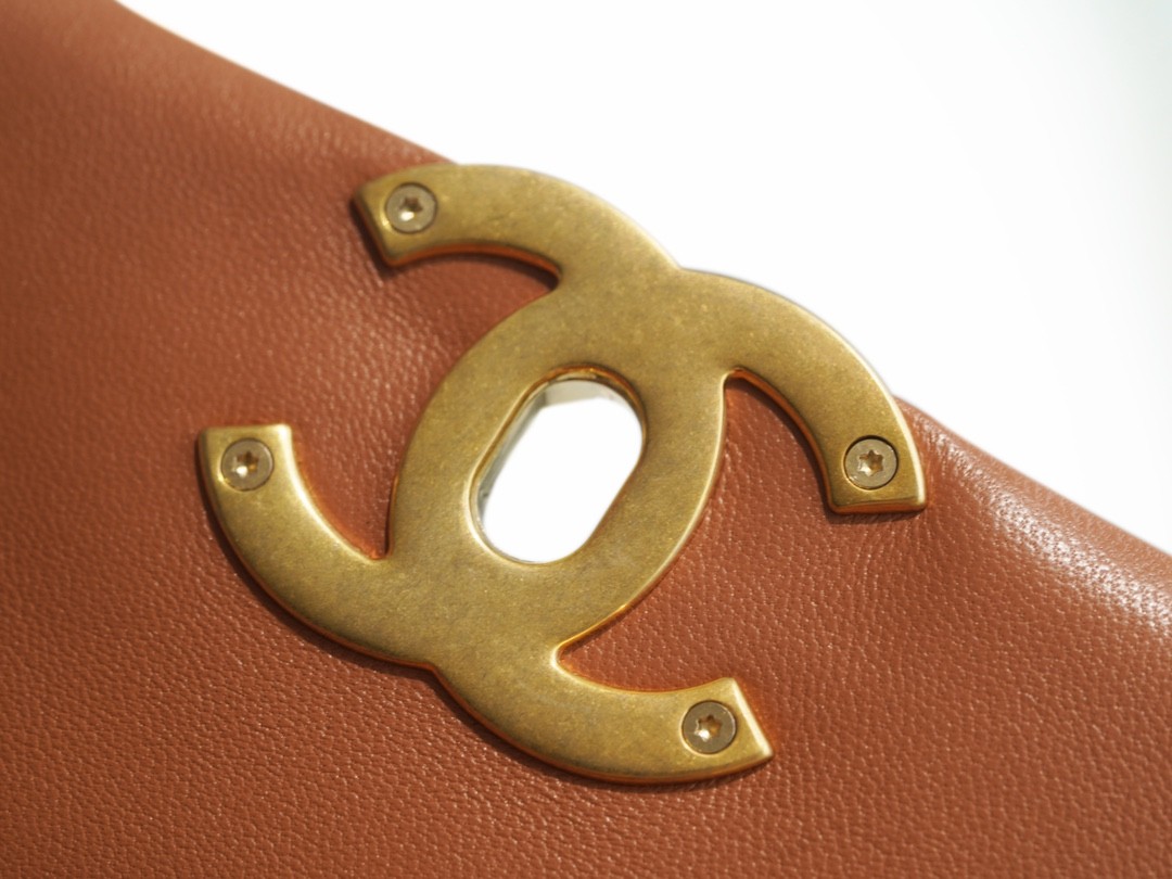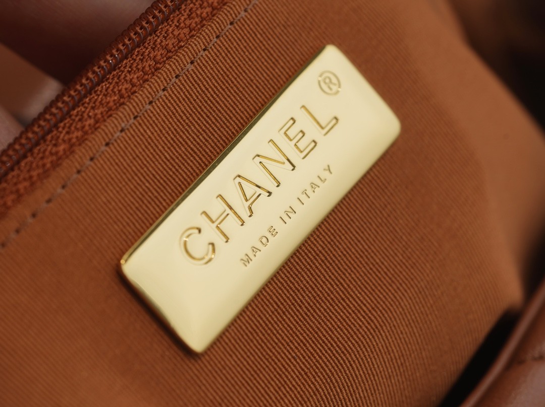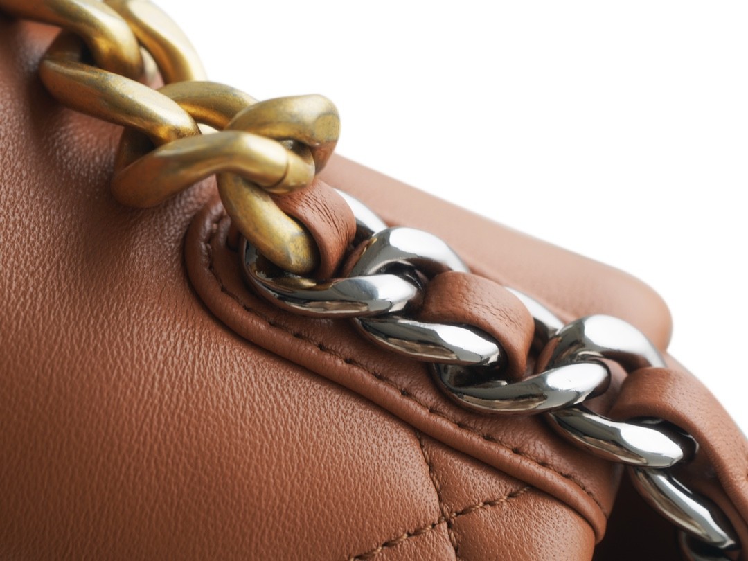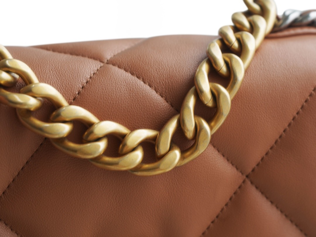 팬더샵 샤넬 19 스몰 핸드백 램스킨 & 골드 메탈 카라멜