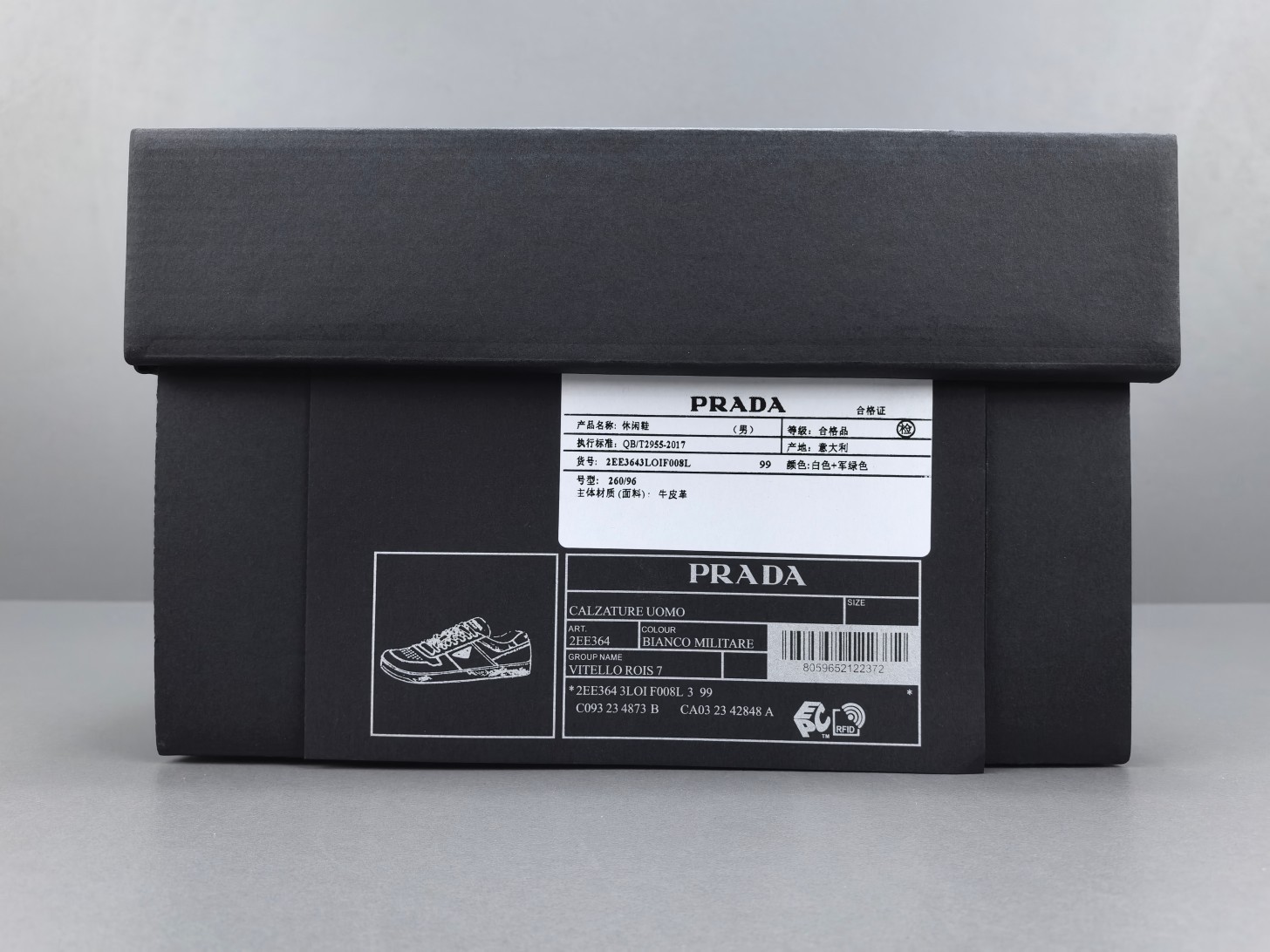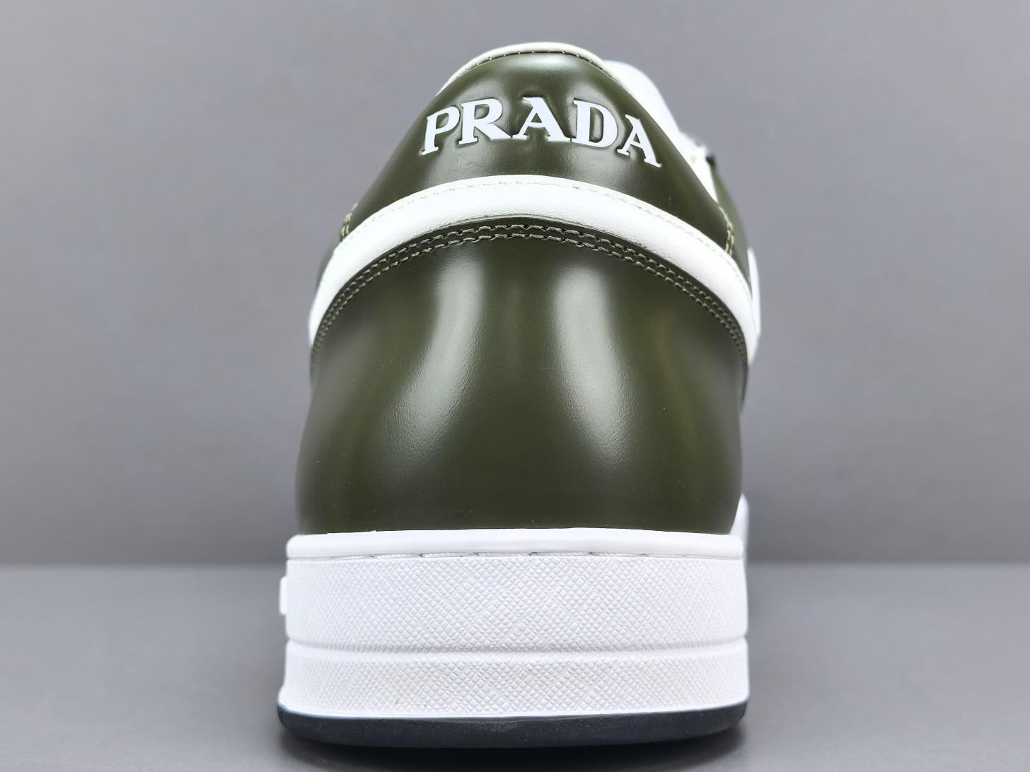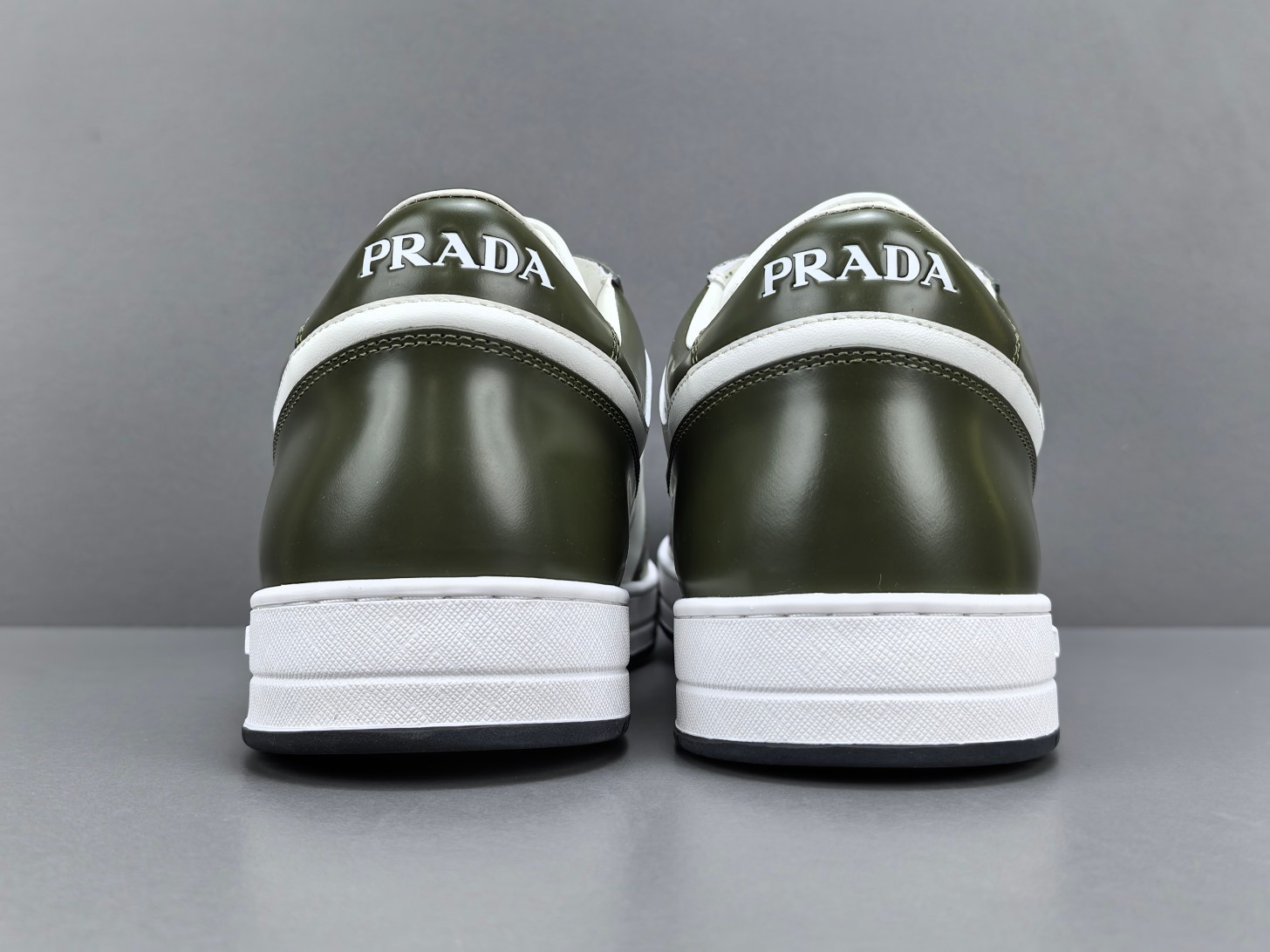 프라다 다운타운 레더 스니커즈 화이트 올리브 그린