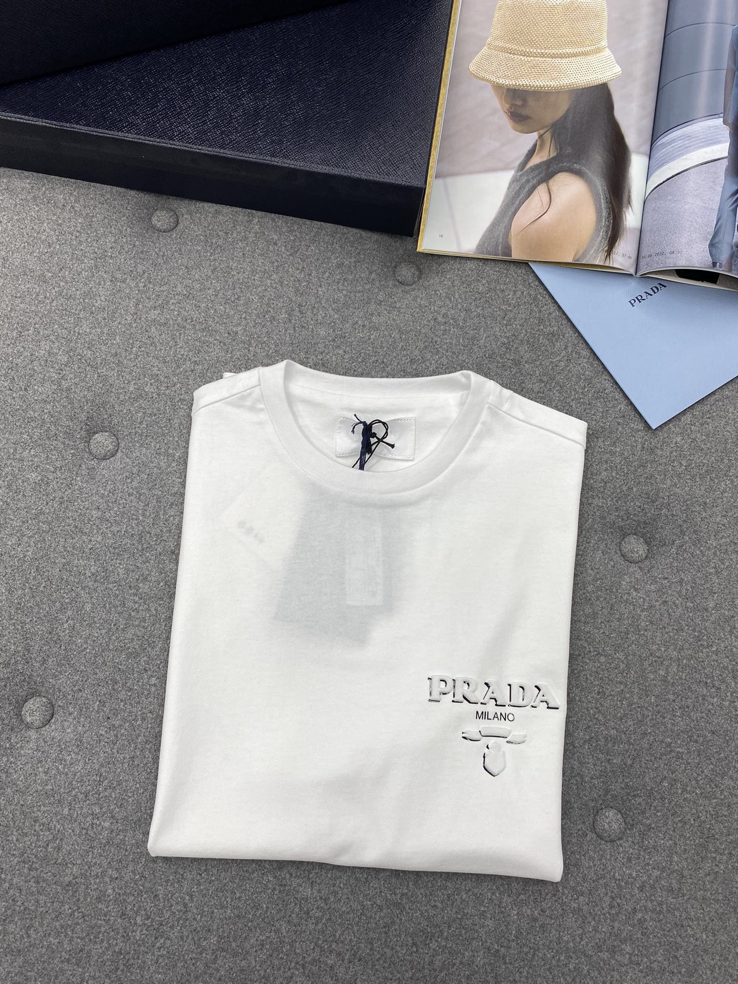 프라다 레터링 코튼 티셔츠 화이트