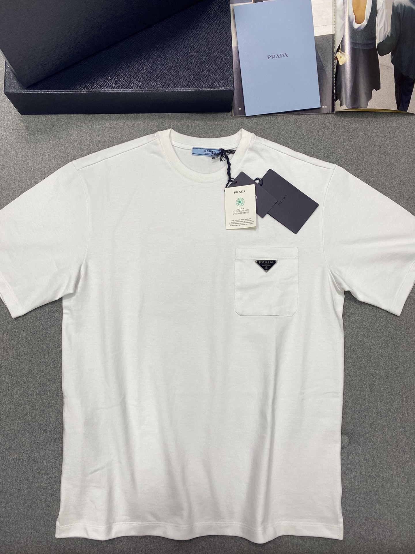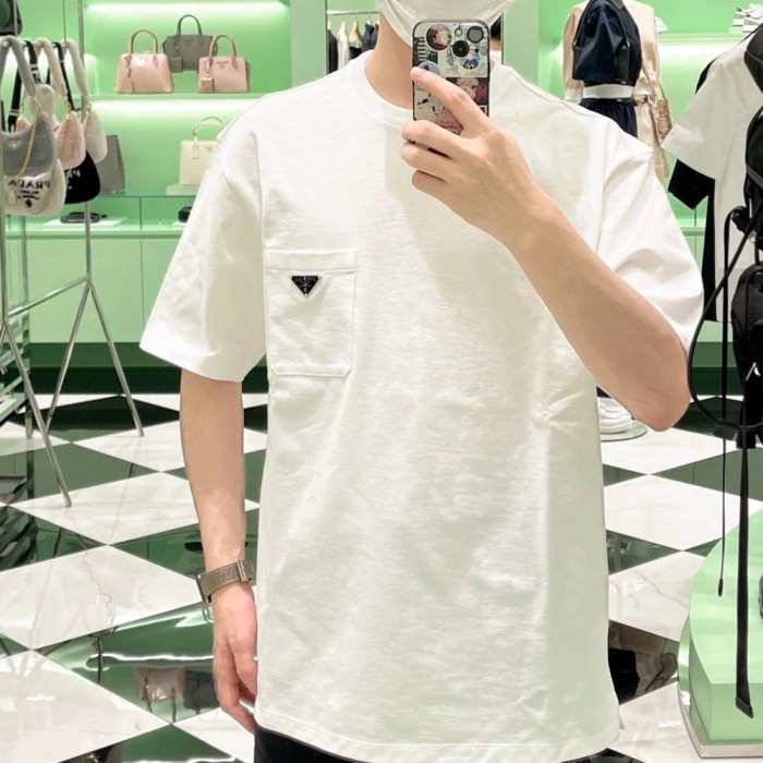 프라다 로고 포켓 반소매 티셔츠
