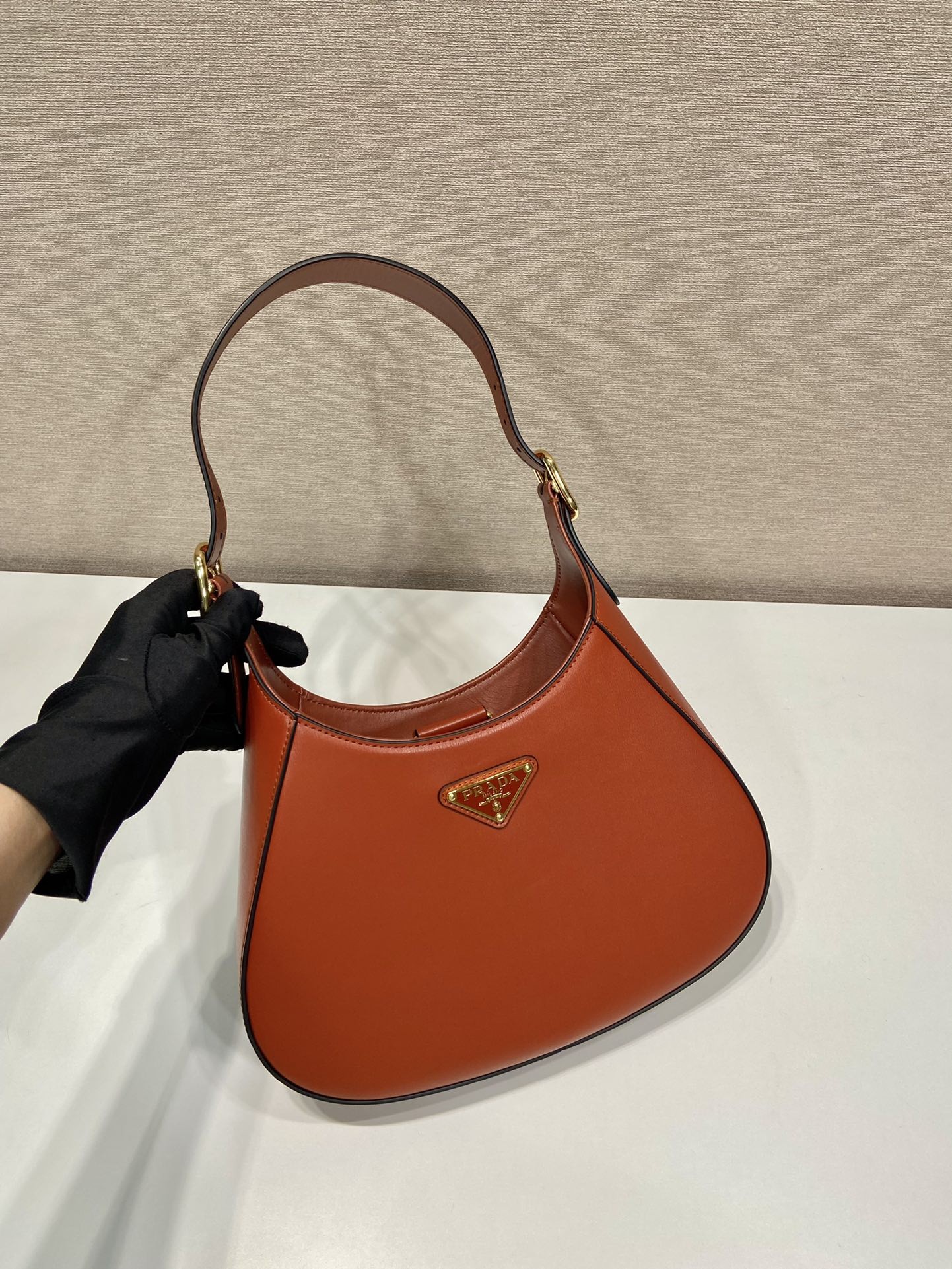 프라다 삼각로고 레더 클리오백 카라멜