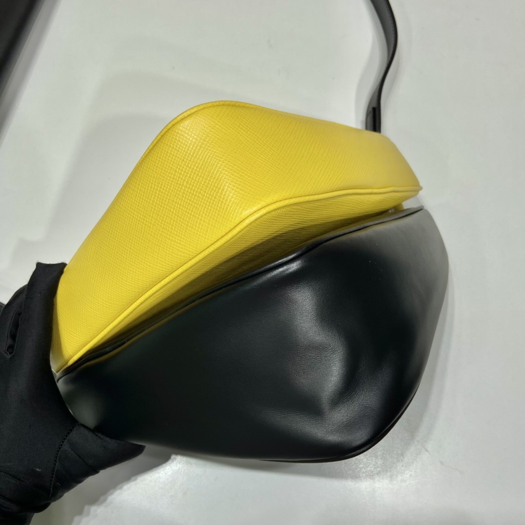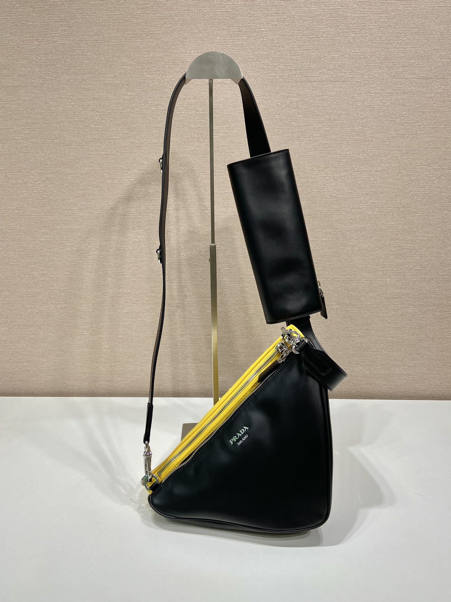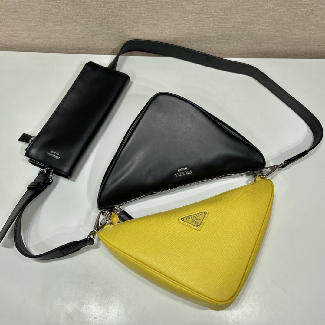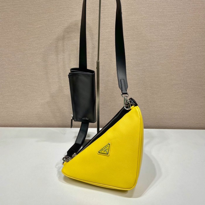 프라다 트라이앵글 사피아노 레더 디태처블 파우치 더블 숄더백 옐로우