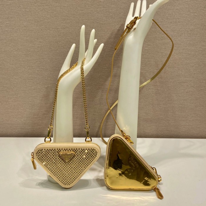 프라다 패브릭 새틴 미니백 골드