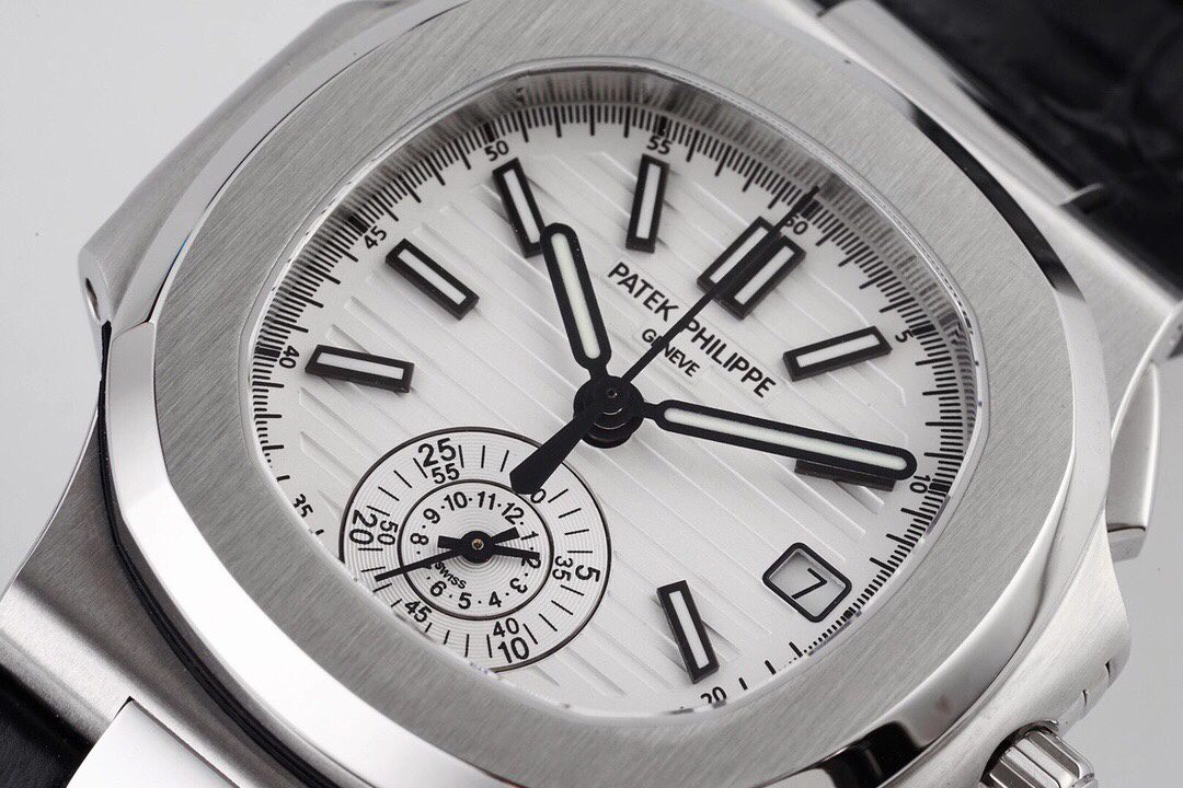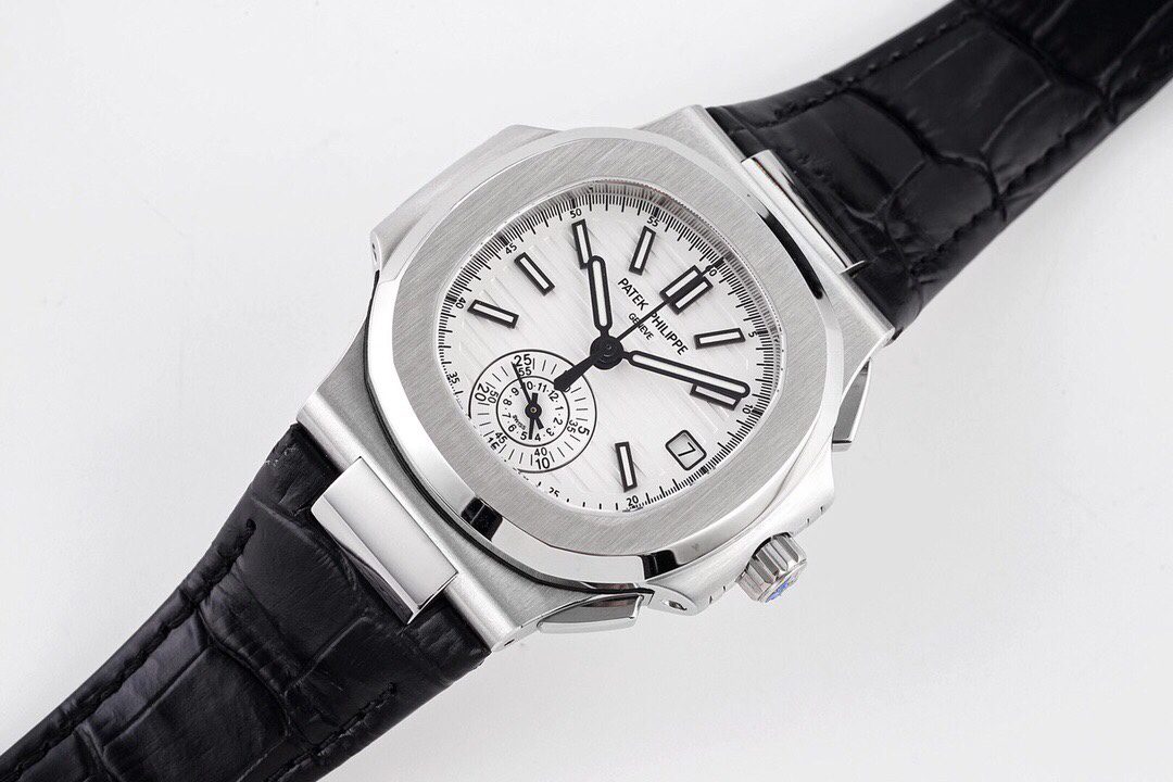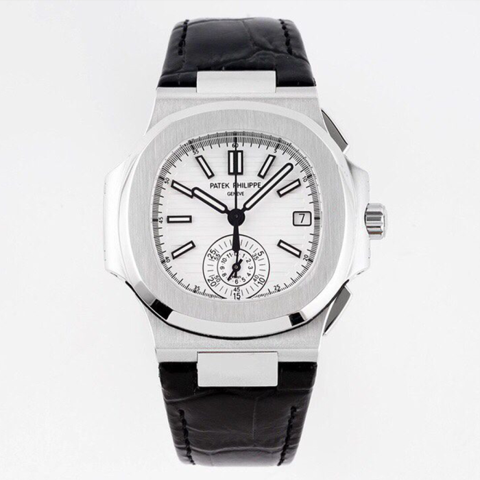 3K공장 파텍필립 노틸러스 크로노그래프 화이트 다이얼 가죽밴드 40mm 5980