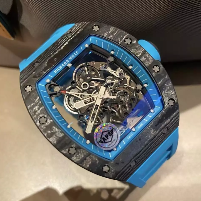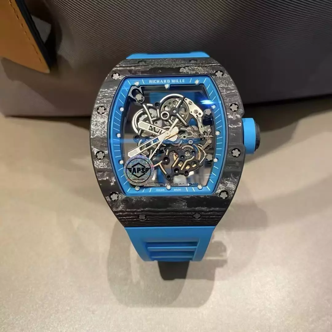 APS공장 V2 리차드밀 부바왓슨 RM-055 블랙 카본 / 블루 러버밴드