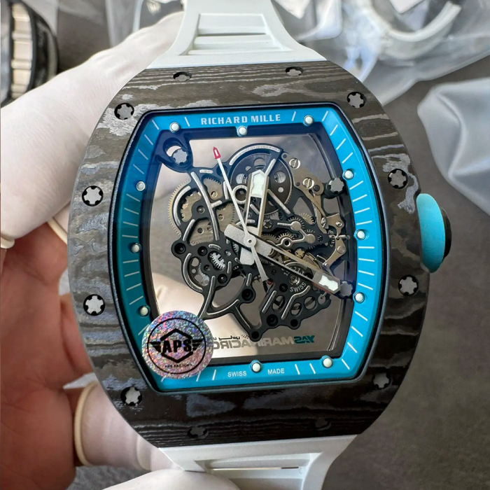 APS공장 V2 리차드밀 부바왓슨 RM-055 블랙 카본 / 화이트 러버밴드