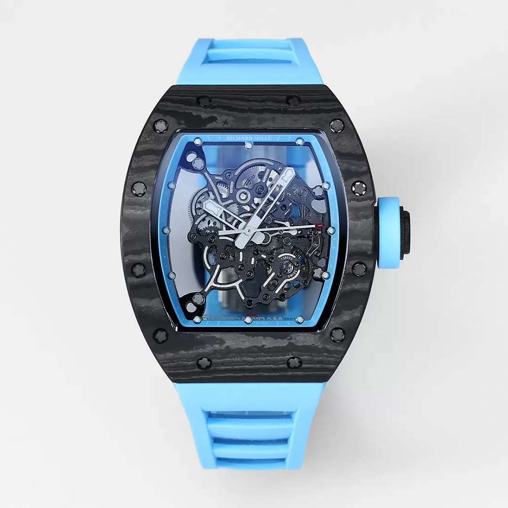 BBR공장 리차드밀 부바왓슨 블랙 카본 케이스 블루 러버밴드 RM055