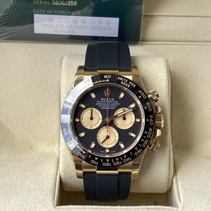 BT공장 롤렉스 데이토나 세라믹 베젤 블랙 레이싱 다이얼 옐로우 골드 금통 러버밴드 40mm 116518