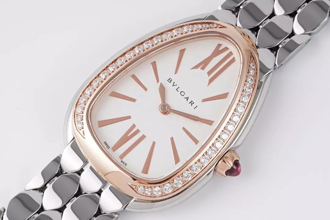BV공장 불가리 세르펜티 세두토리 워치 화이트 다이얼 다이아 베젤 콤비 33mm 103143