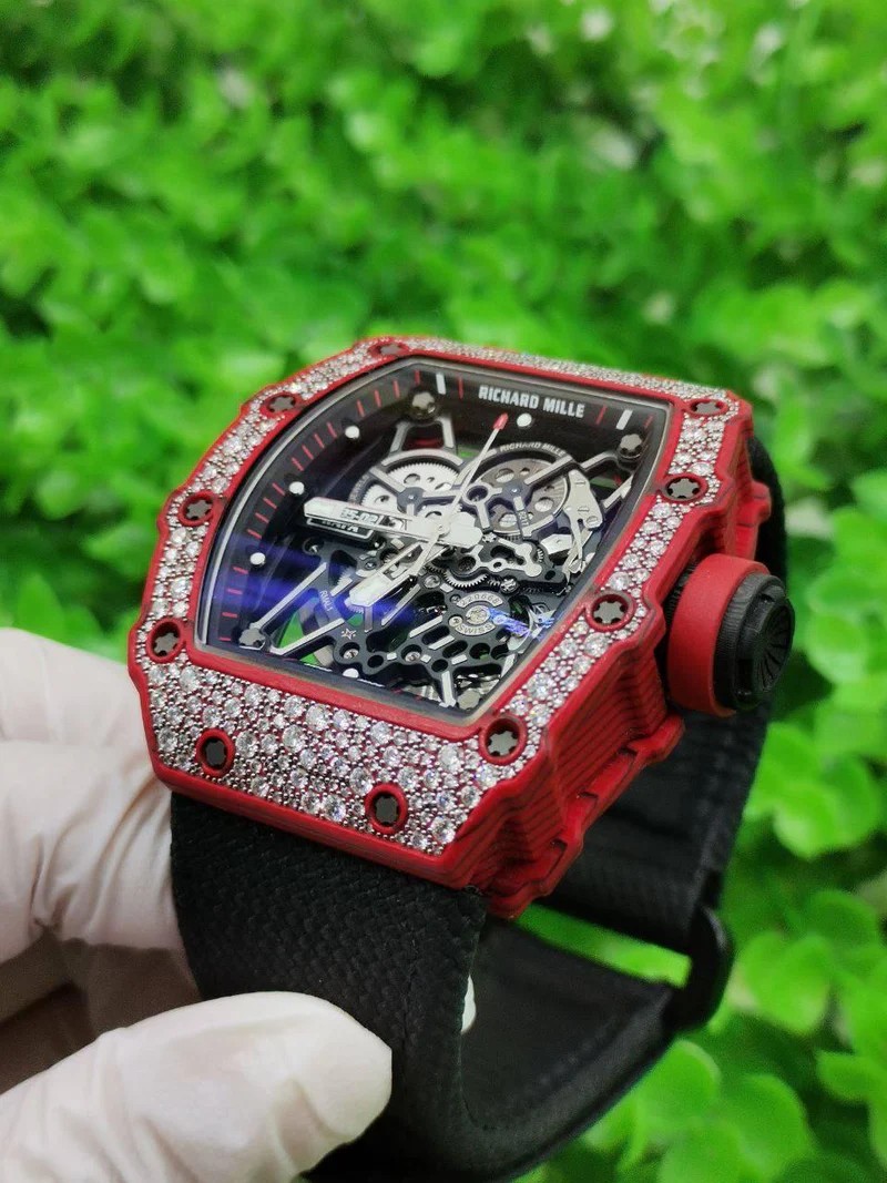 CNC 커스텀 리차드밀 라파엘 나달 레드 카본 천연 다이아 세팅 RM35-02