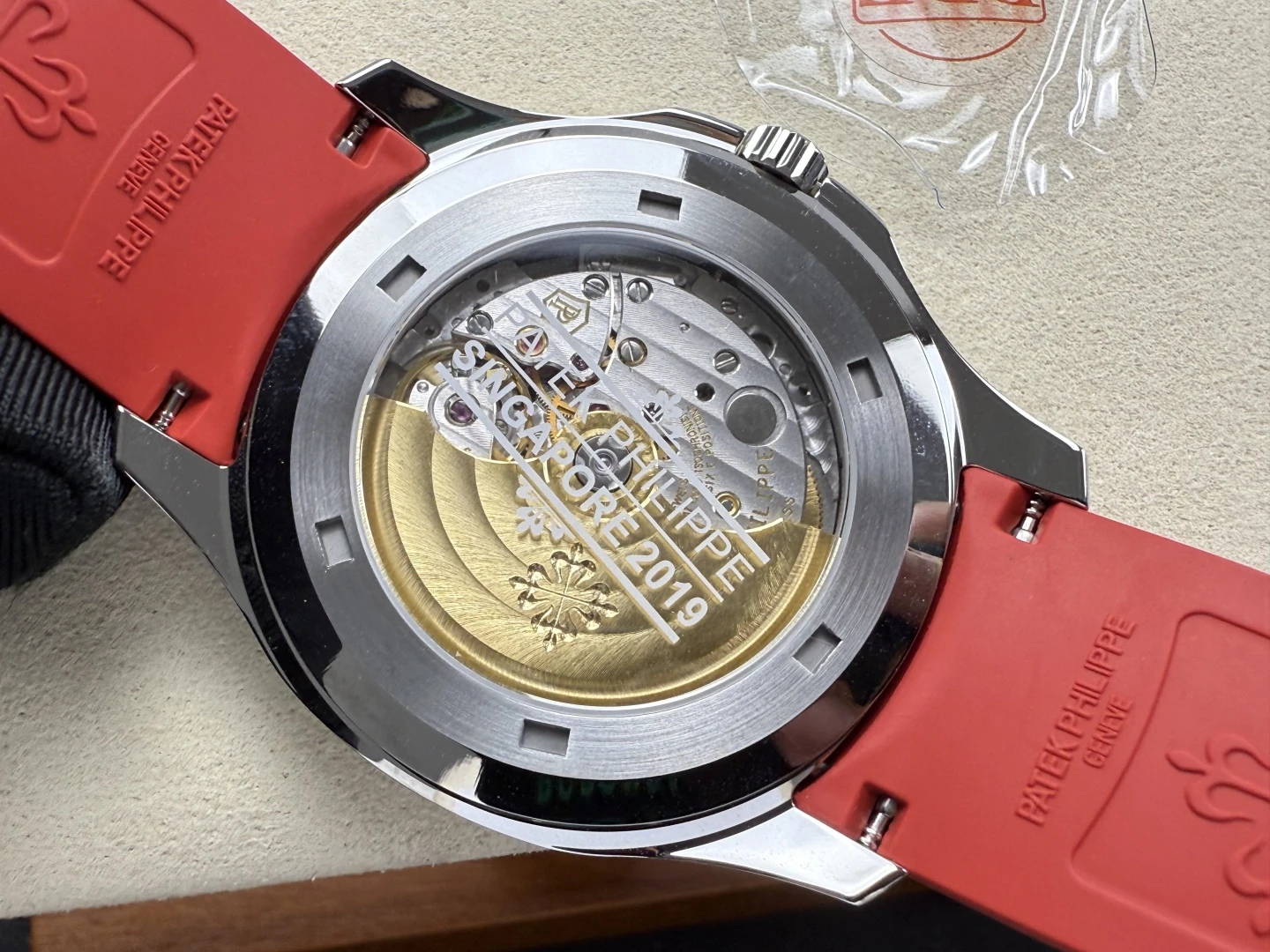 DD공장 파텍필립 아쿠아넛 그레이 다이얼 레드 스트랩 42mm 5167