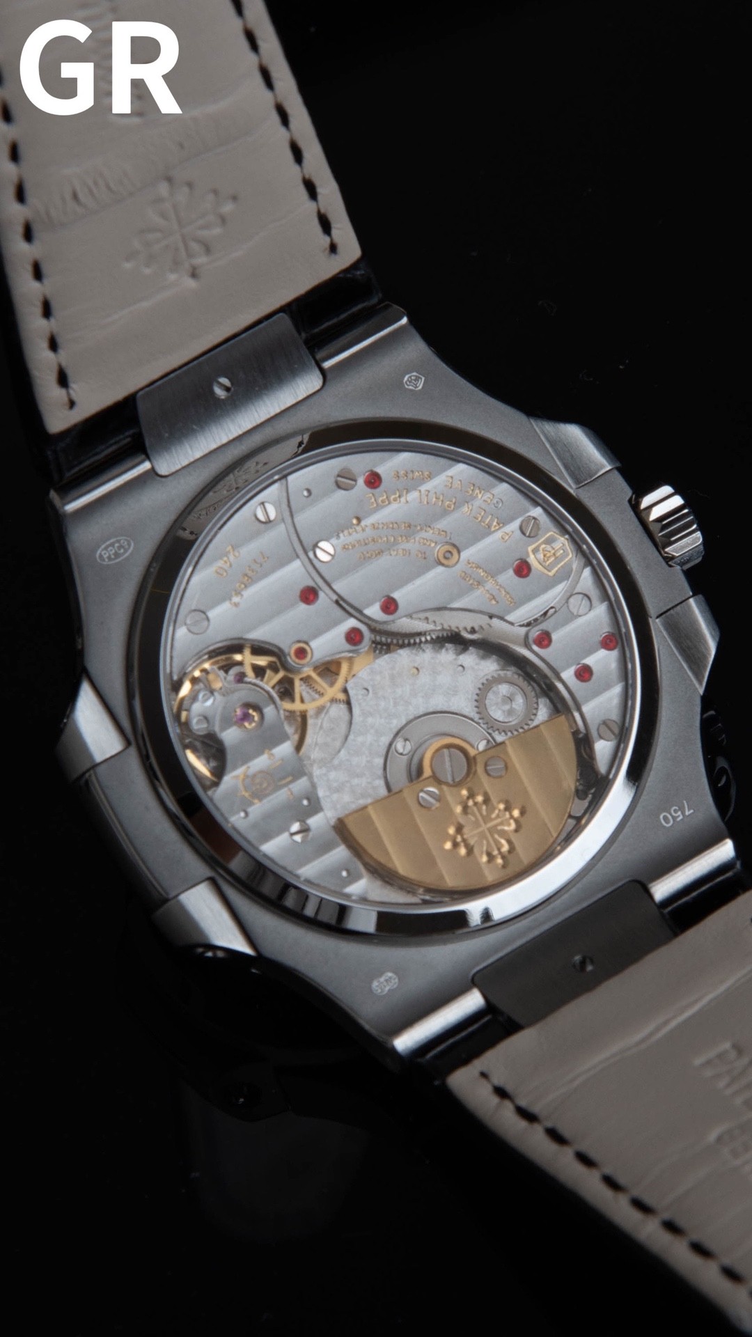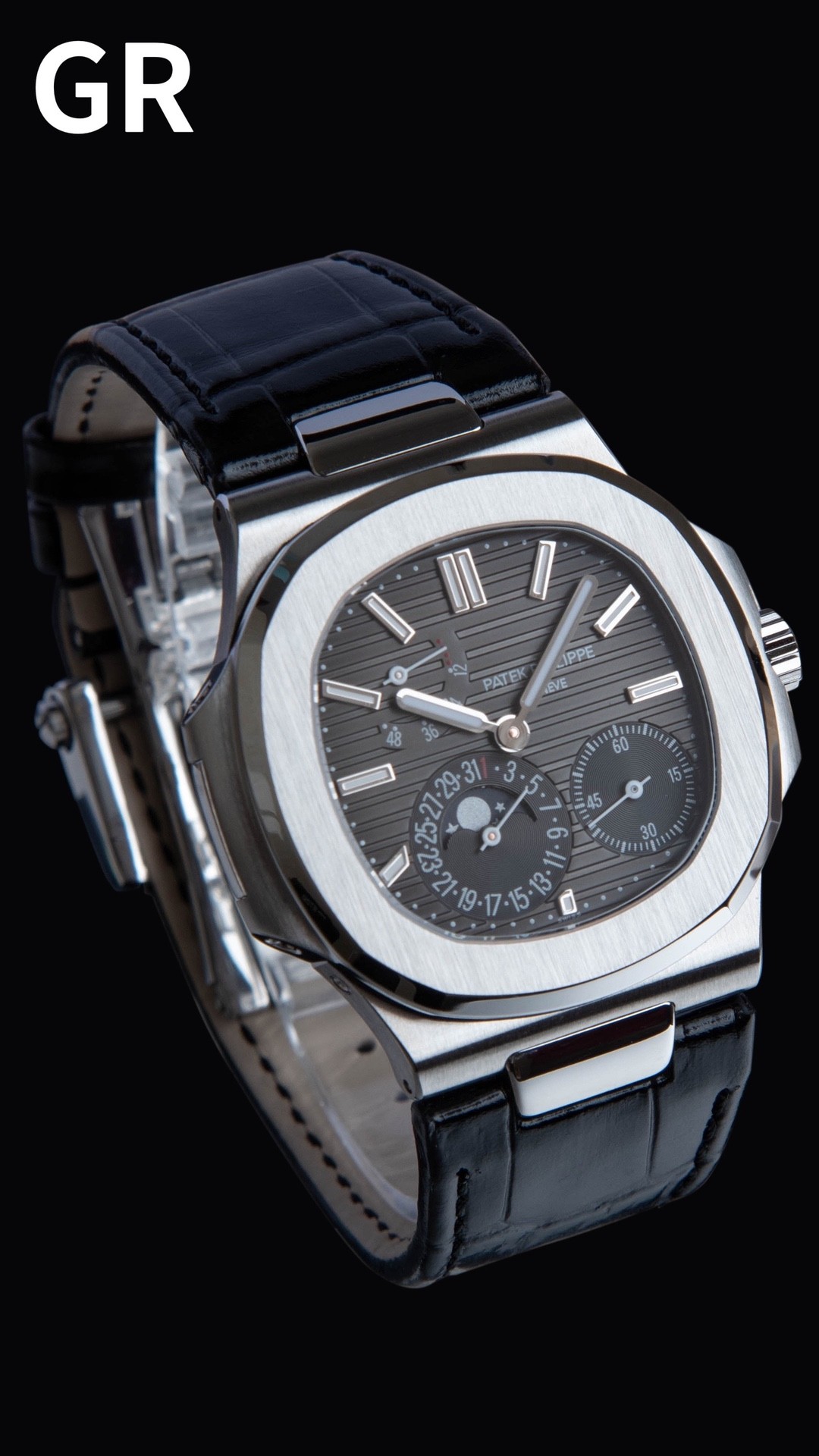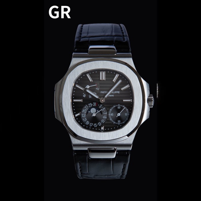 GR공장 파텍필립 노틸러스 문페이즈 블랙 다이얼 가죽밴드 5712