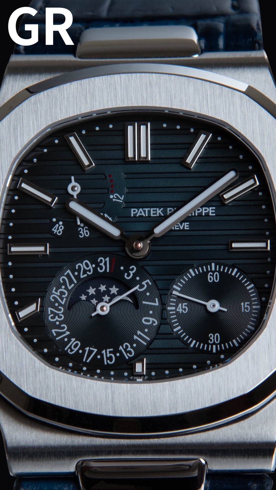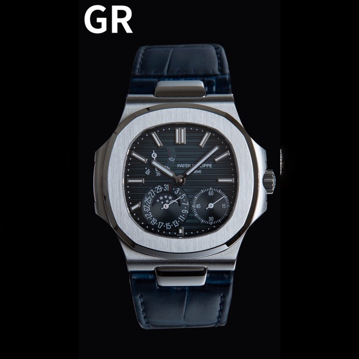 GR공장 파텍필립 노틸러스 문페이즈 청판 다이얼 가죽밴드 5712