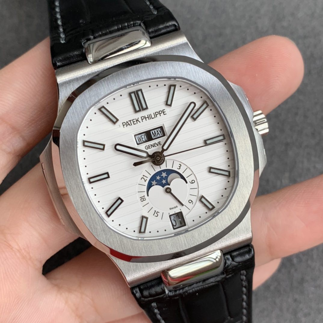 GR공장 파텍필립 에뉴얼캘린더 화이트 다이얼 가죽밴드 5726