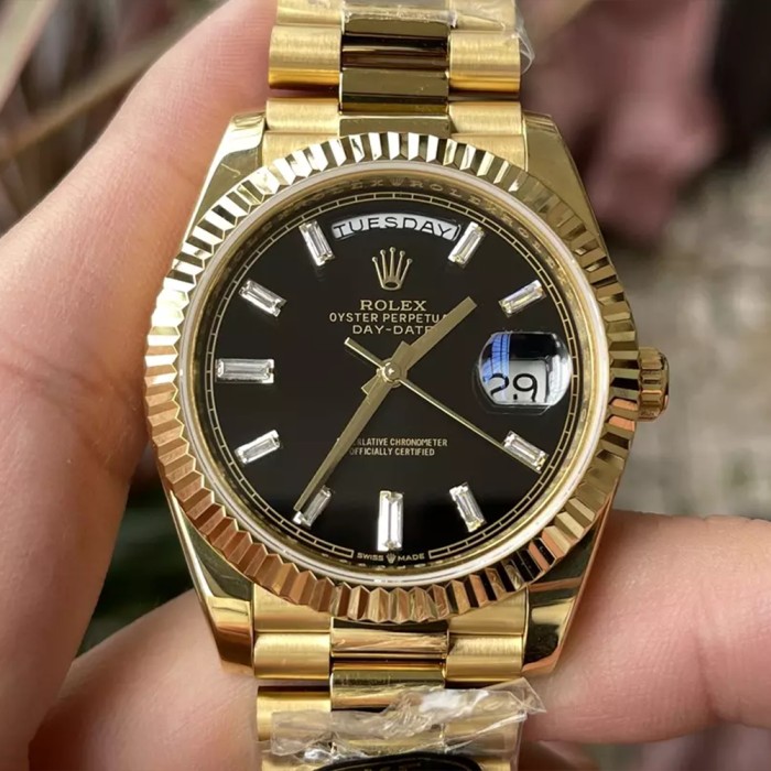 KF공장 롤렉스 데이데이트 40 블랙 바게트 다이얼 옐로우골드 금통 228238