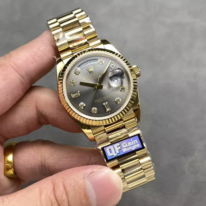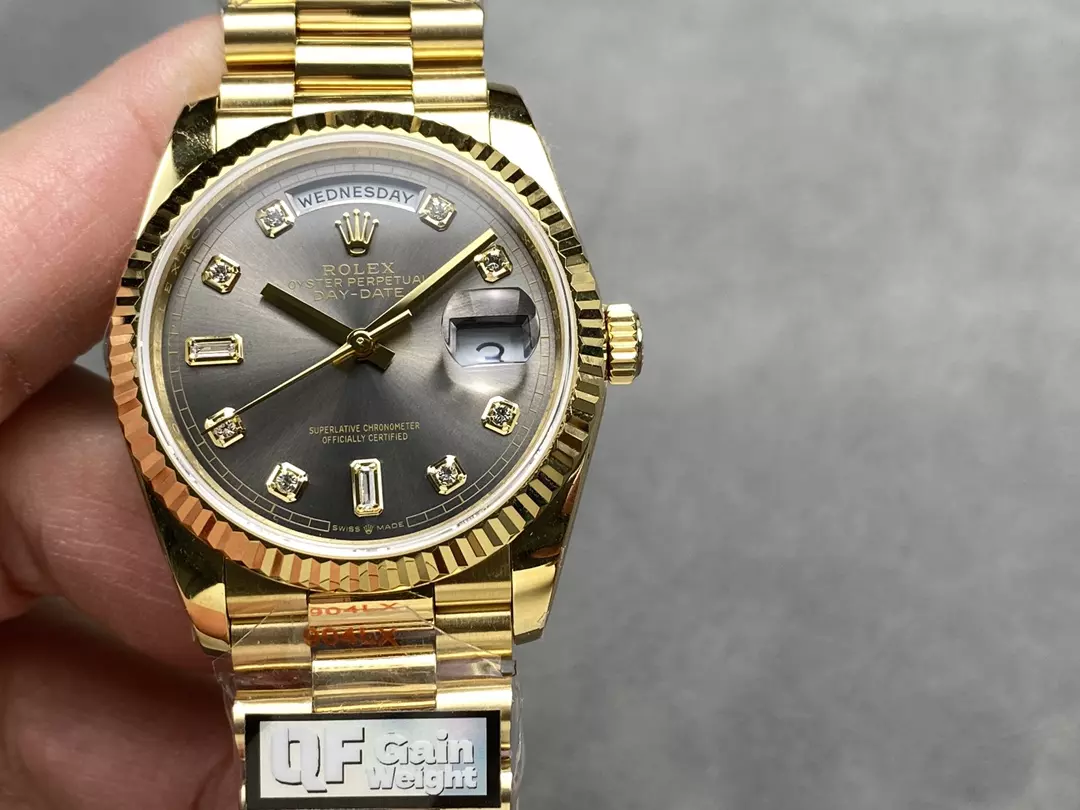 QF공장 롤렉스 데이데이트 36 그레이 다이아 옴브레 다이얼 옐로우 골드 금통 128238