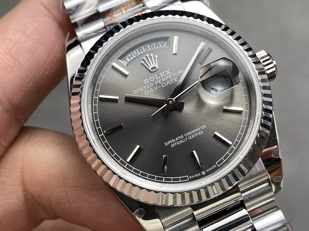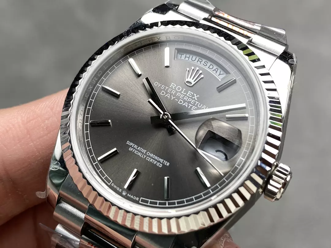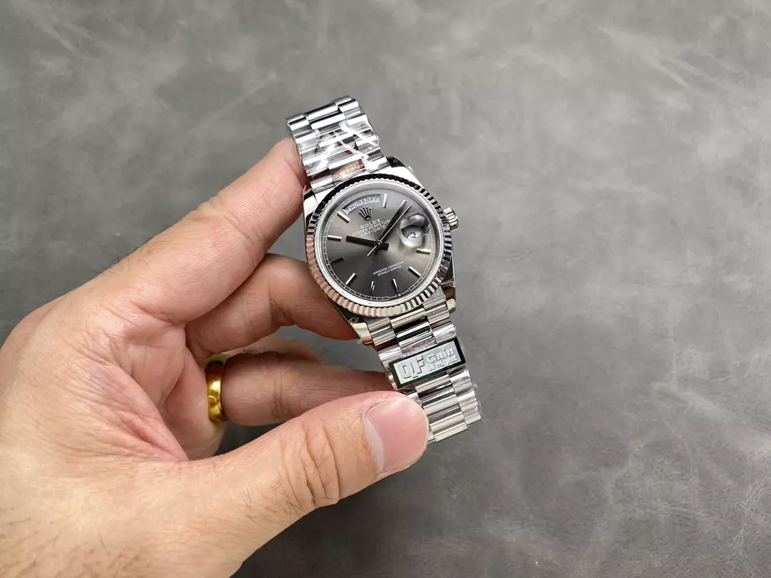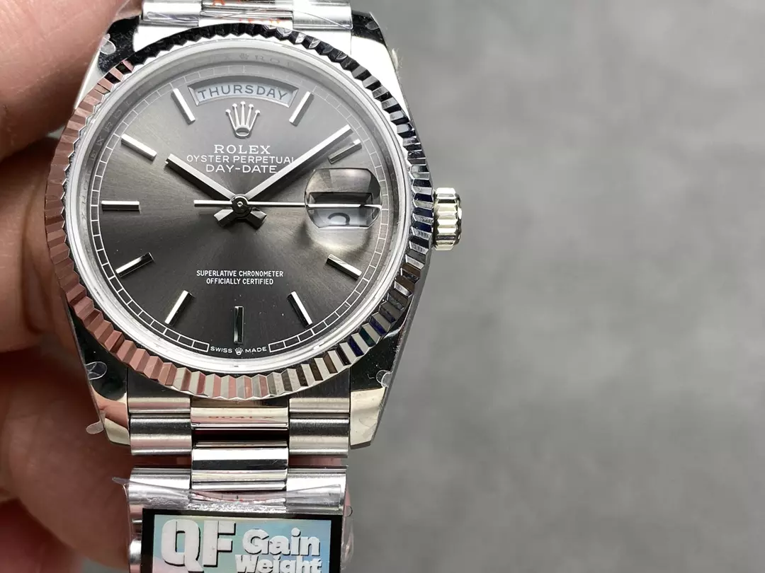 QF공장 롤렉스 데이데이트 36 그레이 다이얼 화이트 골드 금통 128236