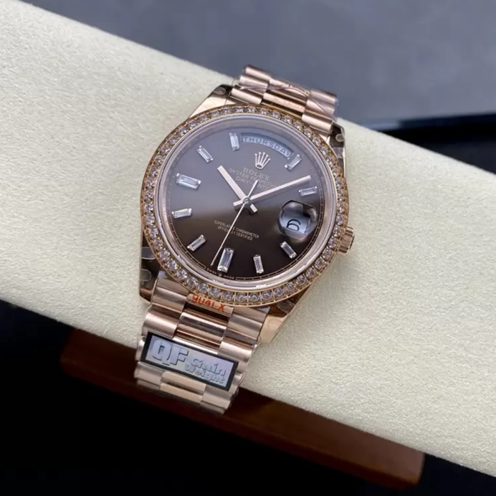 QF공장 롤렉스 데이데이트 40 브라운 바게트 다이얼 다이아 베젤 로즈골드 금통 228345