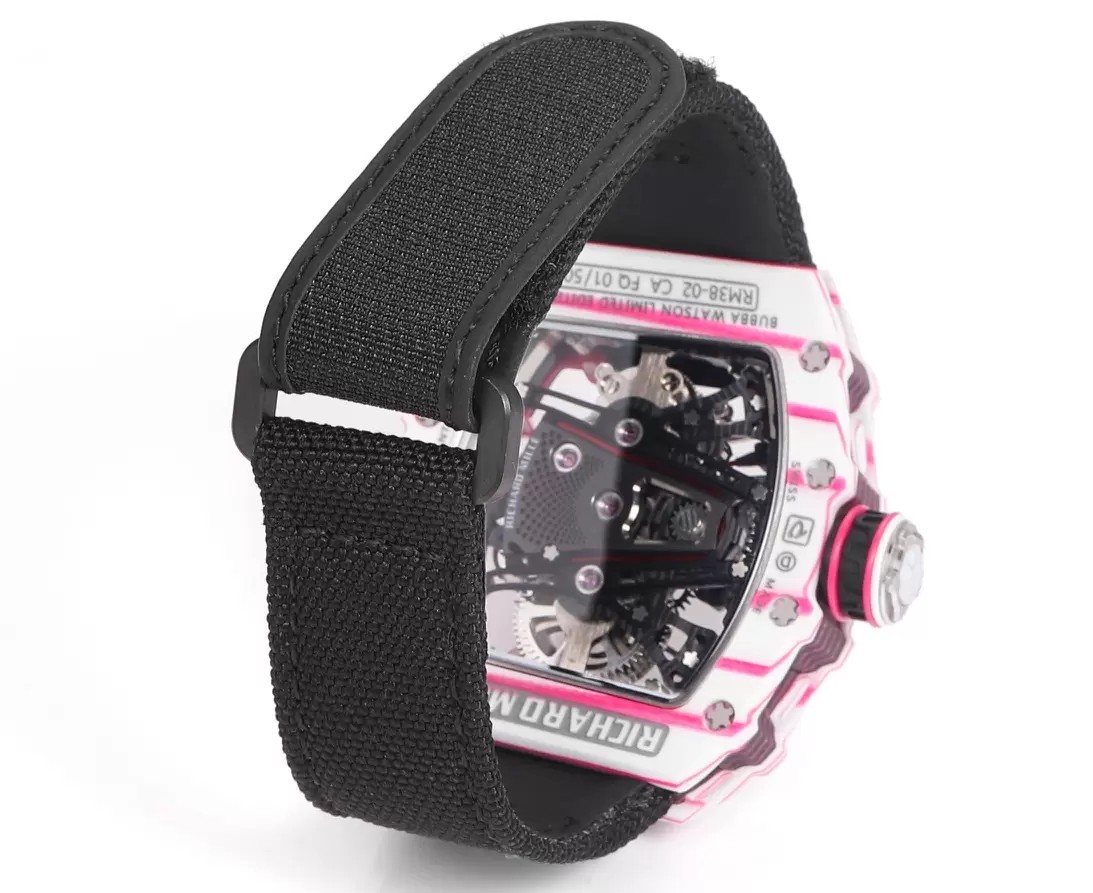 RM공장 리차드밀 수동 와인딩 투르비용 부바 왓슨 화이트/핑크 카본 케이스 블랙 스트랩 밴드 RM38-02