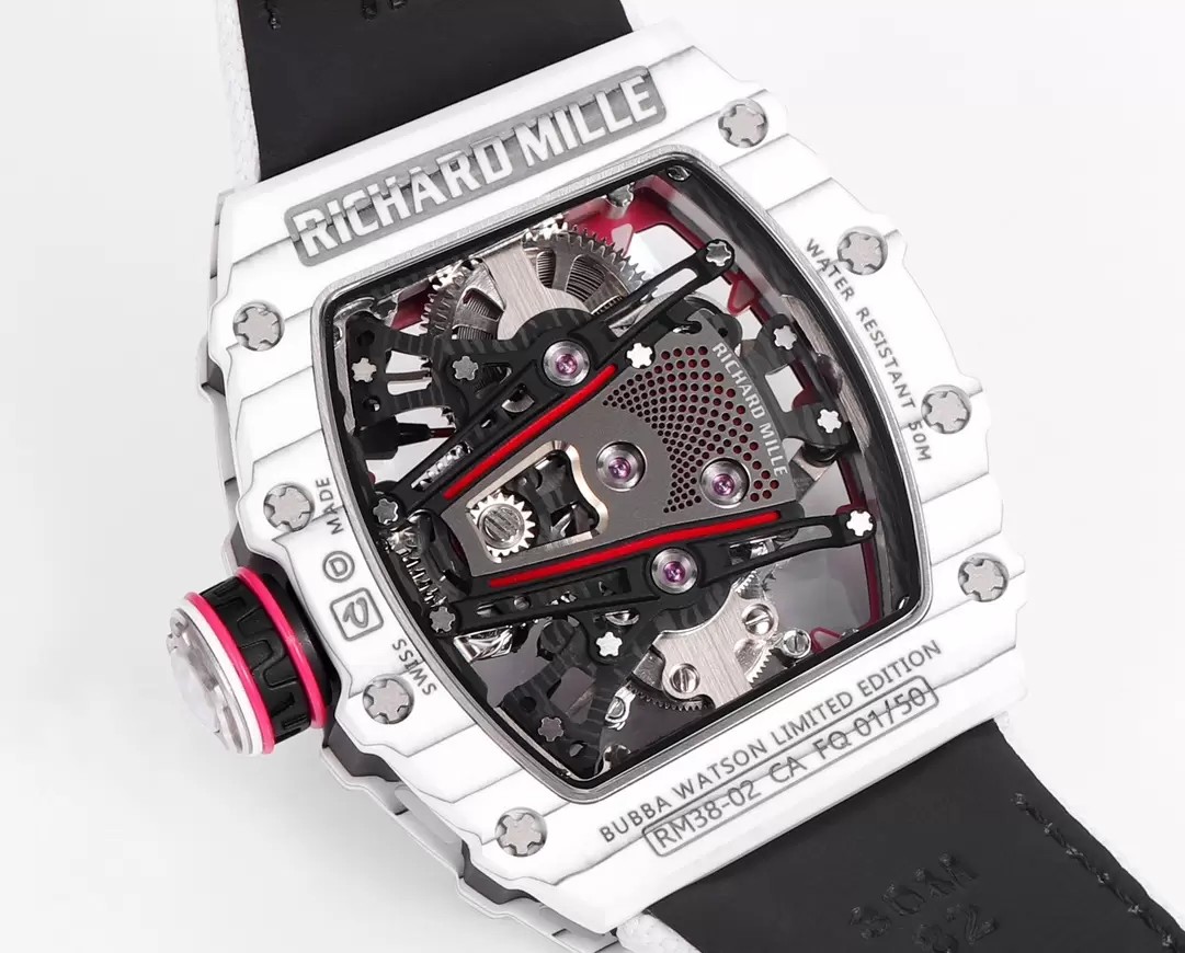 RM공장 리차드밀 수동 와인딩 투르비용 부바 왓슨 화이트 카본 케이스 화이트 스트랩 밴드 RM38-02