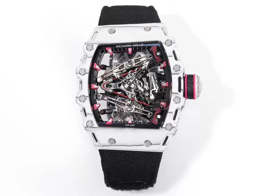 RM공장 리차드밀 수동 와인딩 투르비용 부바 왓슨 화이트 카본 케이스 블랙 스트랩 밴드 RM38-02
