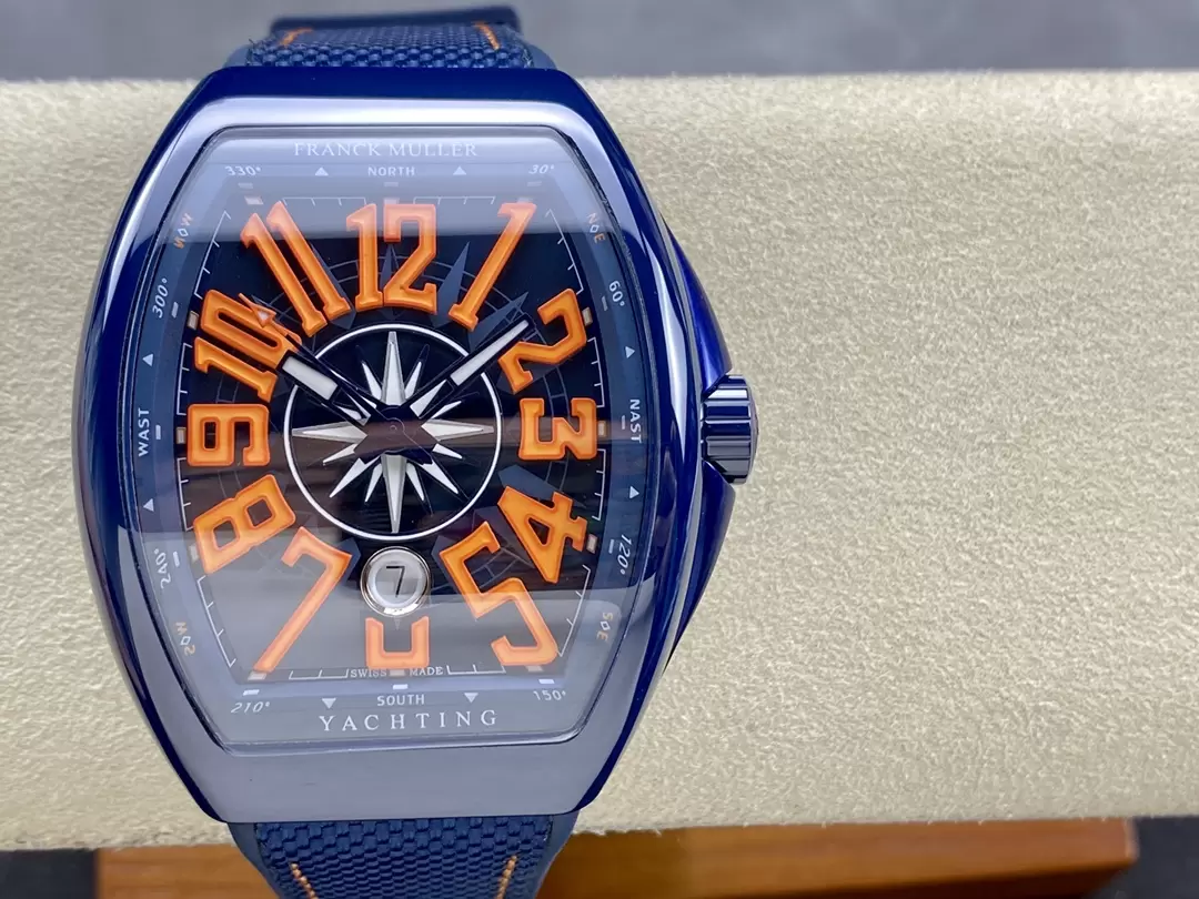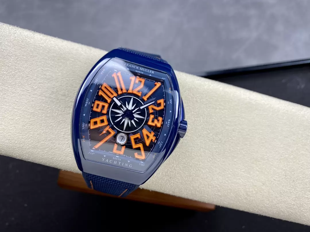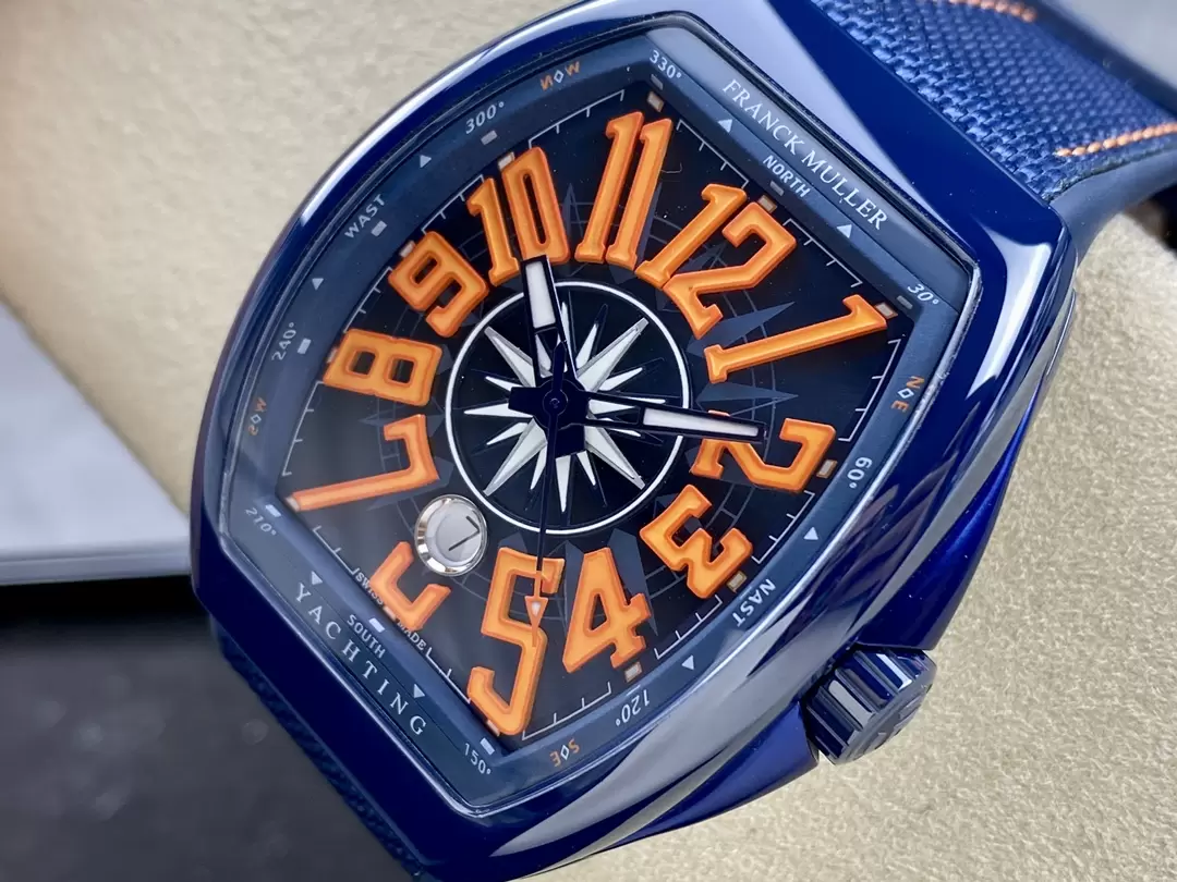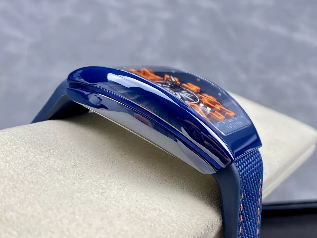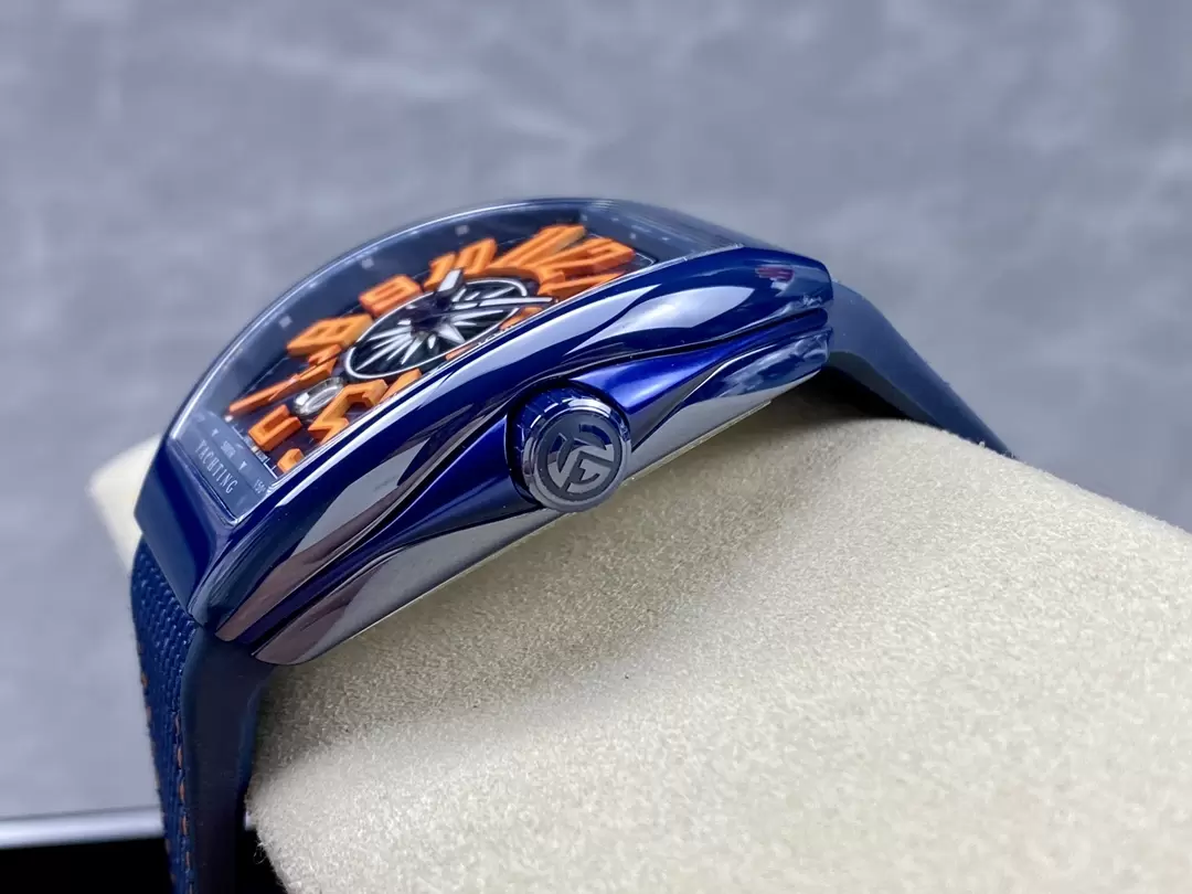 T+공장 프랭크 뮬러 뱅가드 V45 블루 세라믹 케이스 오렌지 다이얼 45mm