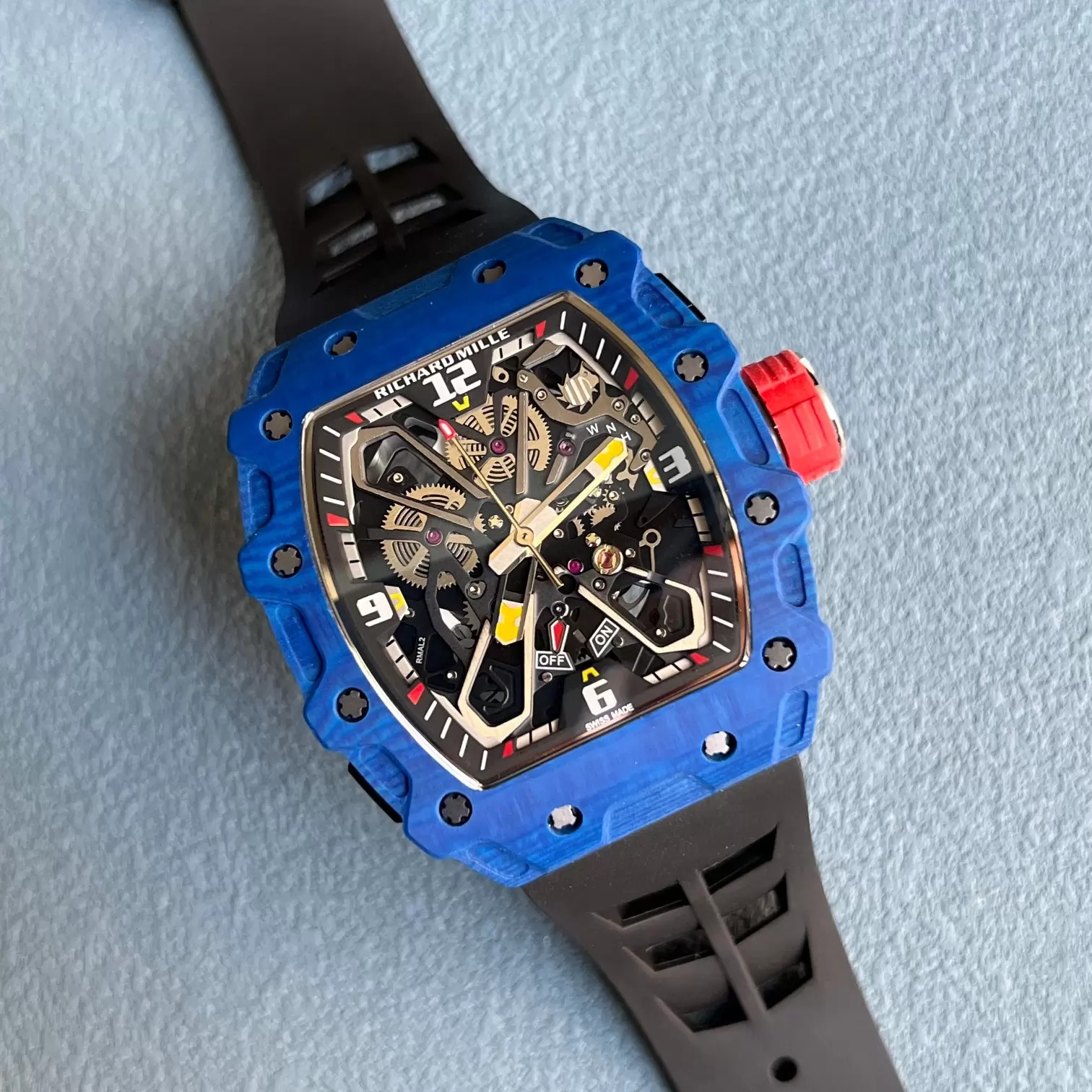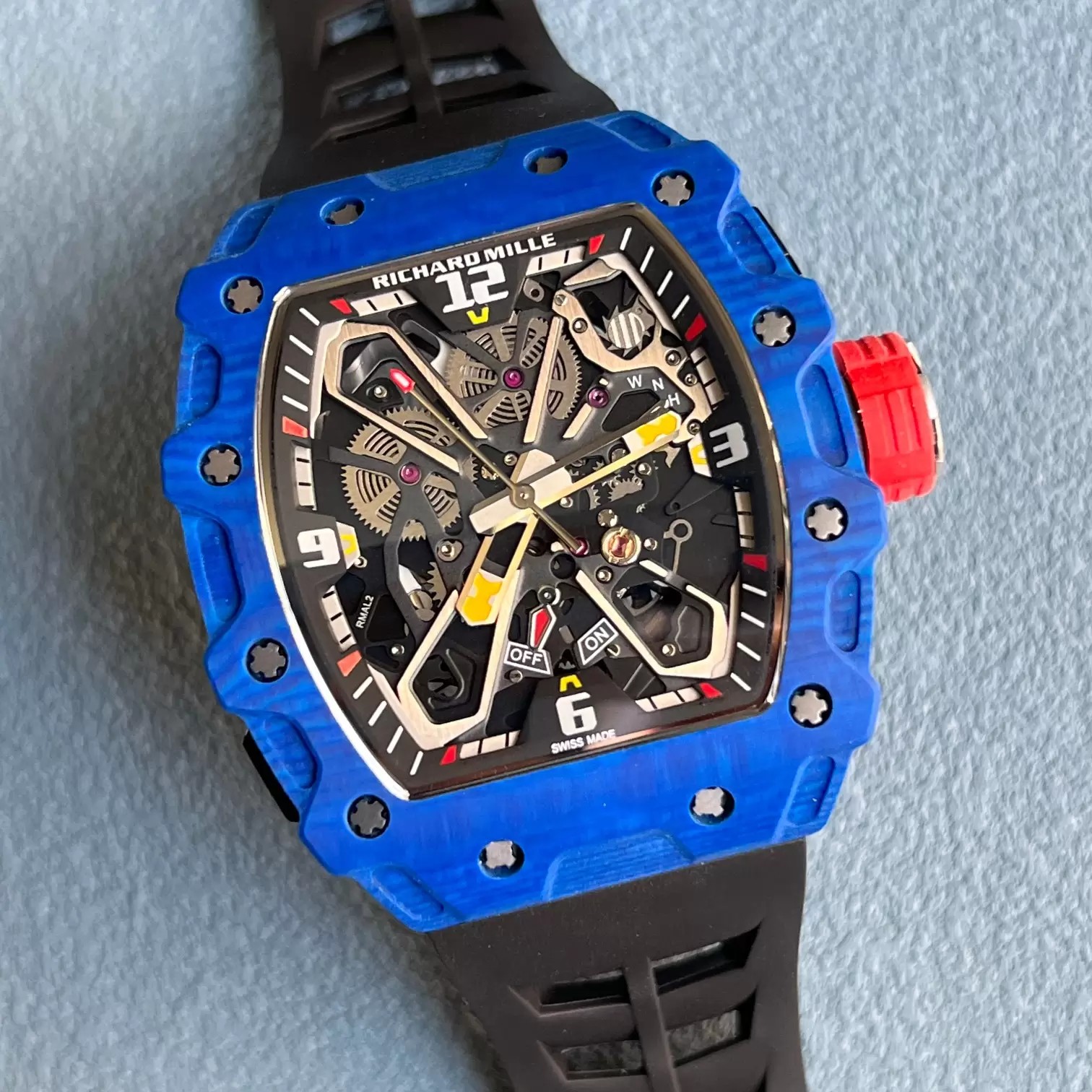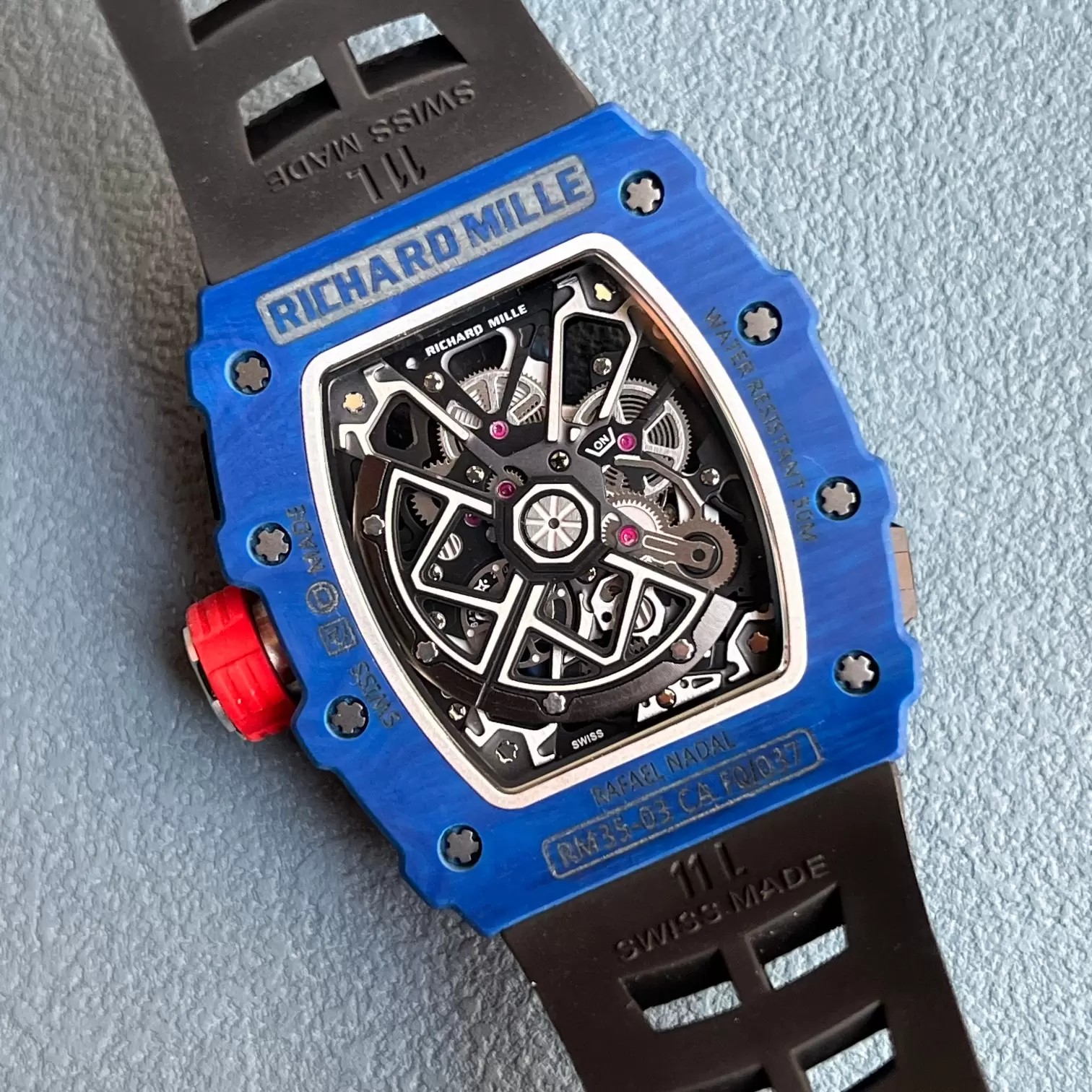 Z공장 리차드밀 라파엘 나달 블루 카본 케이스 블랙 러버밴드 RM35-03